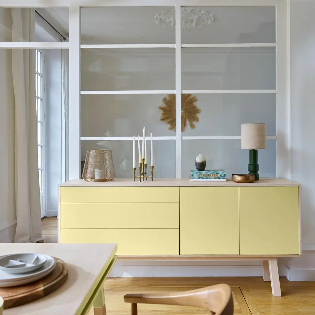 French 3-Drawer 2-Door Light Yellow Sideboard, Designed In Paris By Eric Gizard