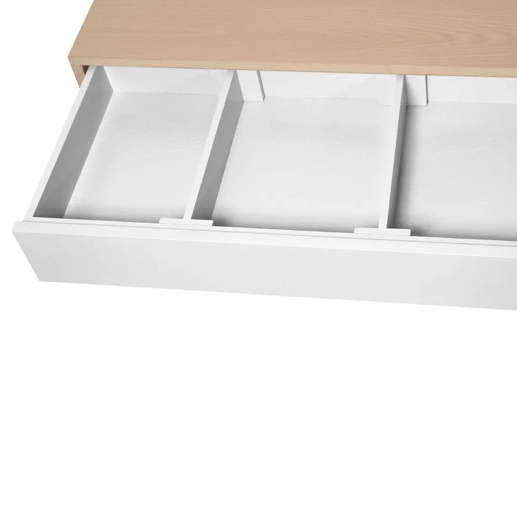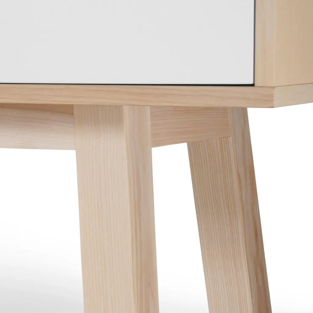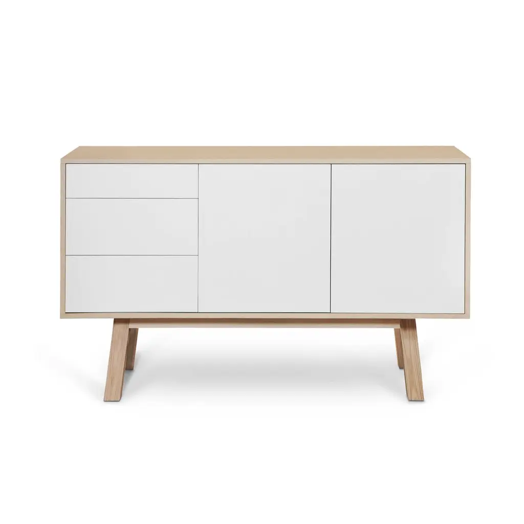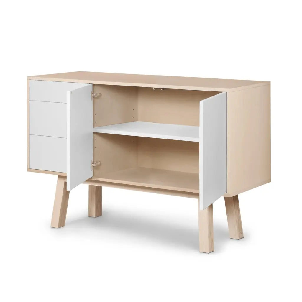 This 2 doors and 3 drawers sideboard is designed by Eric Gizard - Paris.It is 100% made in France with solid ash wood, veneer and lacquered doors in MDF panels. Each door and each drawer opens with a "push-to-release" pressure. An adjustable wooden shelf on cleats is placed behind the 2 doors. The shelf's colour is identical to the doors' colour.The first drawer is lower and can store cutlery, napkins, placemats, etc.In this small drawer, 2 movable wooden dividers allow you to create 3 storage spaces as you wish (see the last detail picture). The other 2 drawers are regular drawers without divider.collection ÉGÉEThis sideboard is part of the ÉGÉE collection designed by Eric Gizard in Paris. Eric combines the sleek and refined codes of Scandinavian design with natural materials and muted and "trendy" colorful lacquers.MON PETIT MEUBLE FRANCAISprovides exclusively 100% Made in France Furniture. The manufacture and finishes are of very high-end quality, carried out in French craft workshops, in the west countryside of France: Loire and Bretagne. Solid ash comes from sustainably managed French forests.