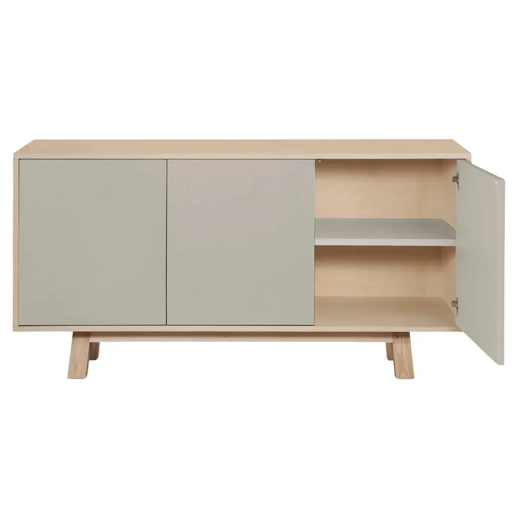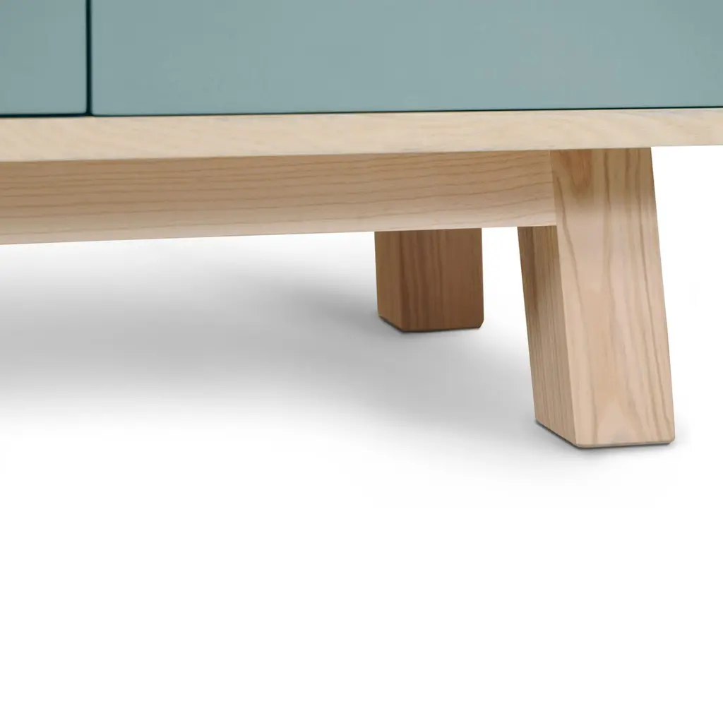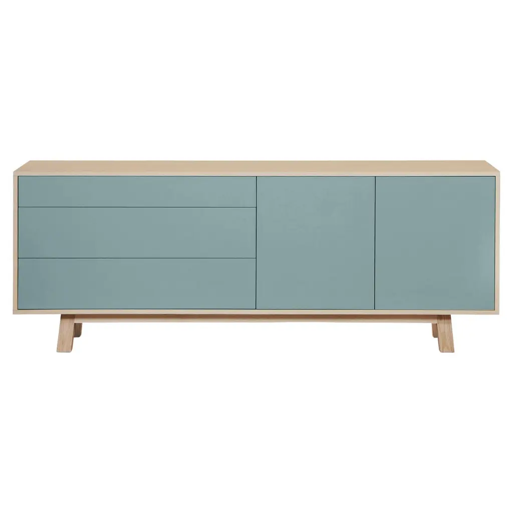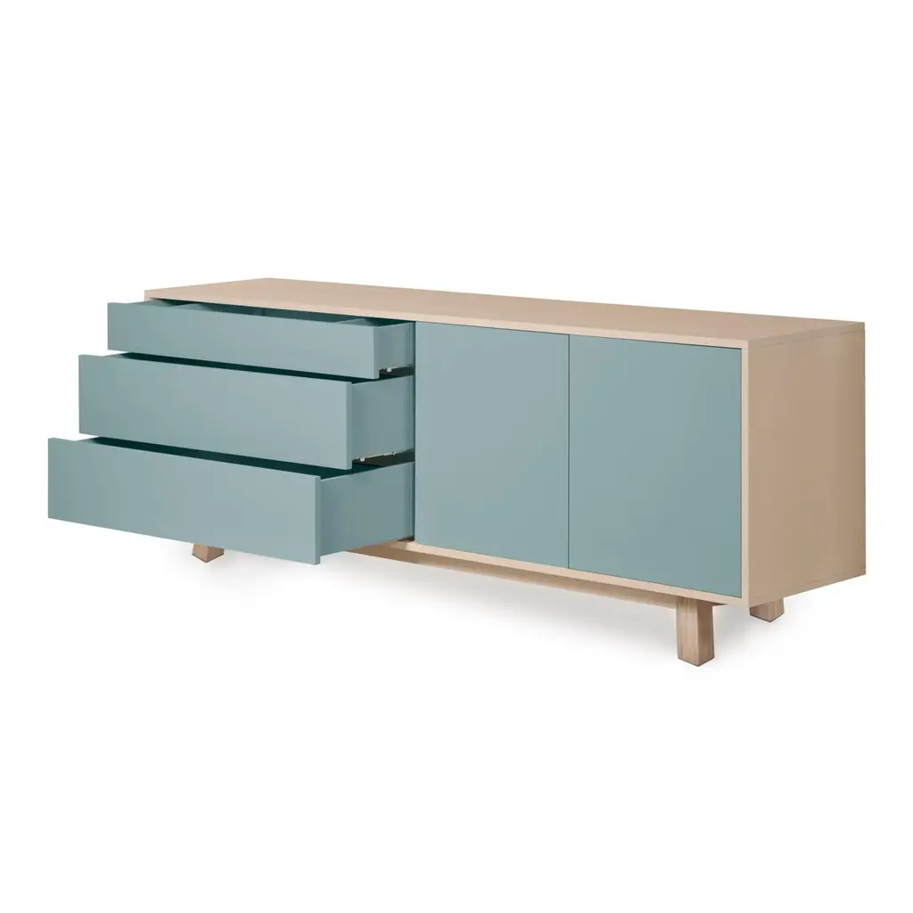 This 2-door, 3-drawer sideboard is presented here in ash wood and also available in French oak.No assembly is required from your side, the furniture is fully mounted in our workshop.The 3 drawers take up half the total length. The drawers fronts are solidly assembled with dovetail joints. The top drawer is lower than the other 2 and features 2 removable interior wooden dividers. The 2 lower drawers are normal drawers without dividers. Behind the 2 hinged doors, 1 height-adjustable shelf on cleats is supplied with the sideboard. To prevent damage during transport, it is positioned at the bottom of the buffet. All you have to do is place it on the cleats (supplied) at the desired height upon reception. Doors and drawers open with a « push & release » pressure on front.ÉGÉE COLLECTIONThis large & low 2-door 3 -drawer sideboard is part of the ÉGÉE collection, designed by the Parisian designer Eric GIZARD who here adopts the refined codes of Scandinavian design. combining natural materials, elegance and sobriety of lines by adding very beautiful muted and "trendy" colors.Inside the ÉGÉE collection, the KUBE concept is designed to offer an optimized and aesthetically pleasing storage concept.MON PETIT MEUBLE FRANÇAISoffers you 100% French products. The solid wood comes exclusively from sustainably managed French forests.The manufacture and finishes are of very high quality, carried out in French workshops in Mayenne, France.