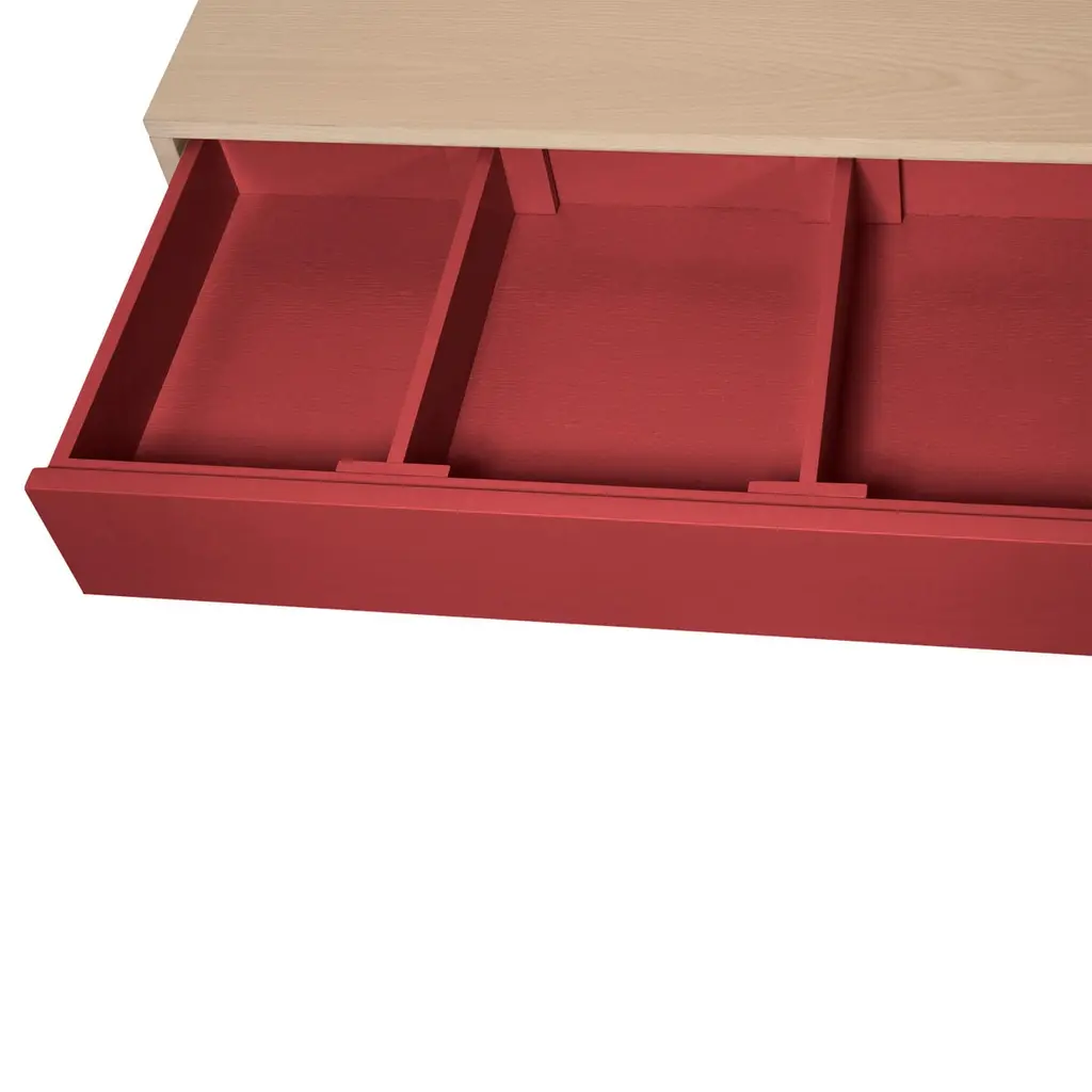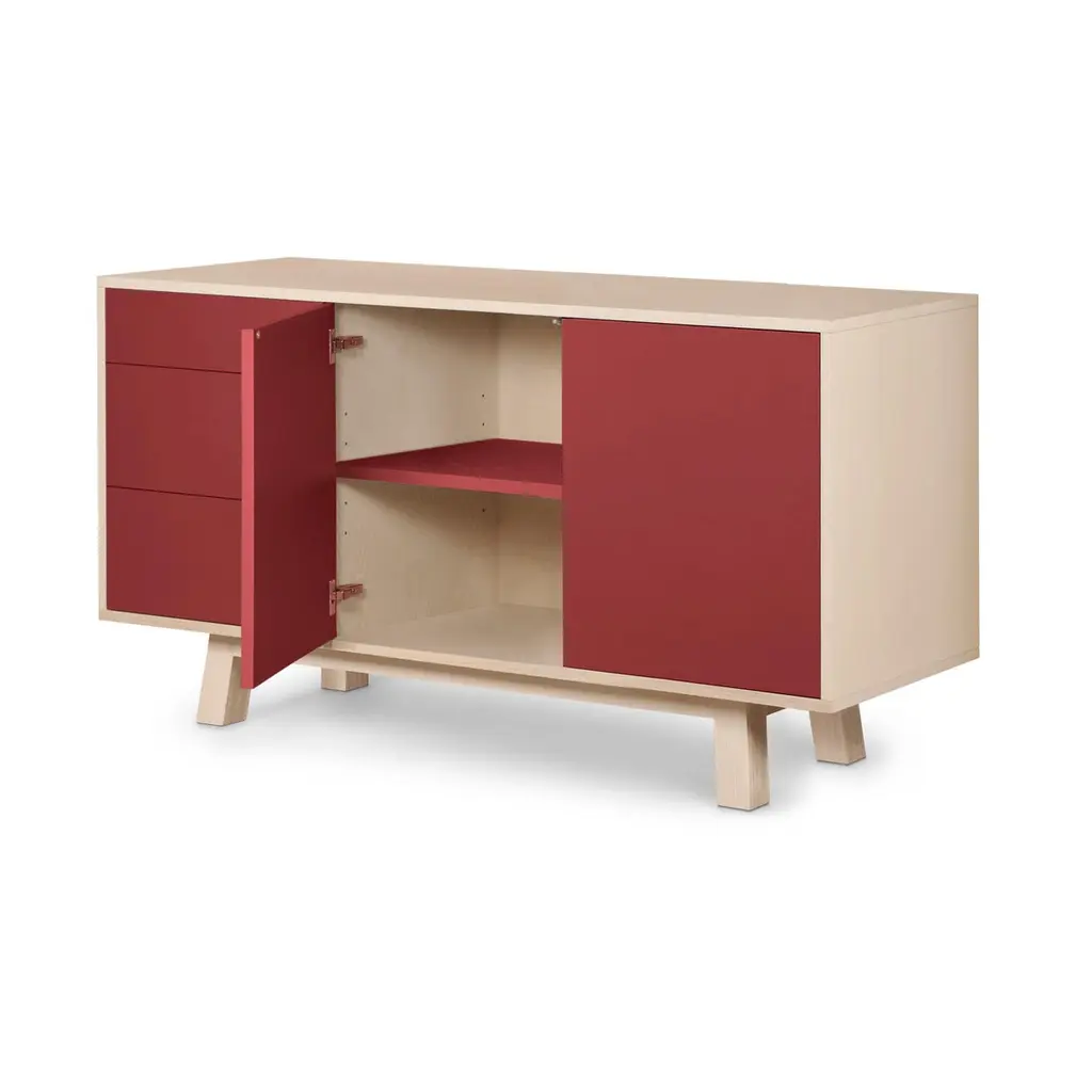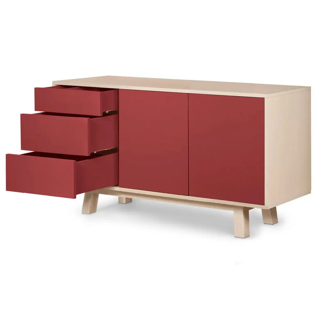 French Handcrafted Red 2-Door 3-Drawer Low Wooden Sideboard Kube By Eric Gizard