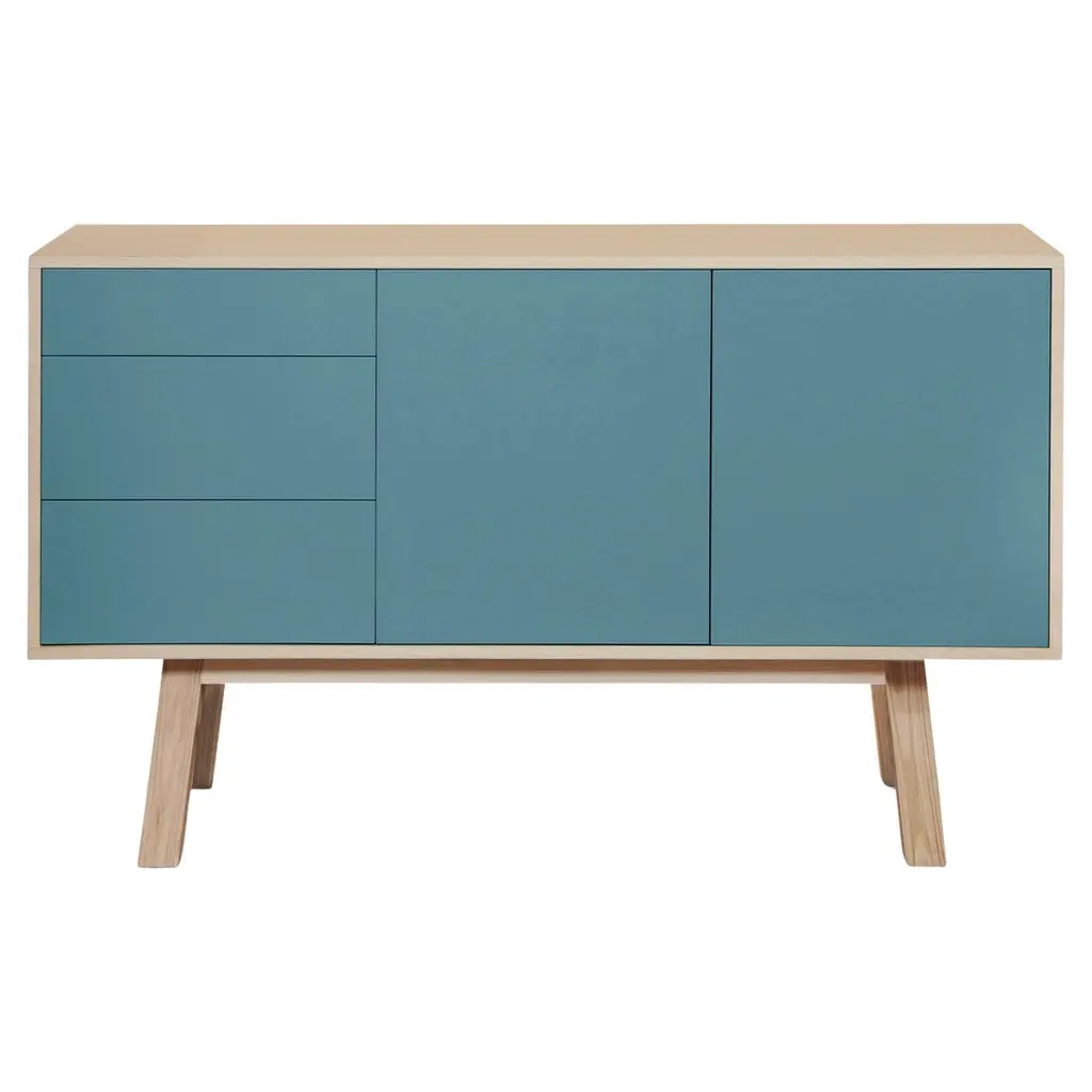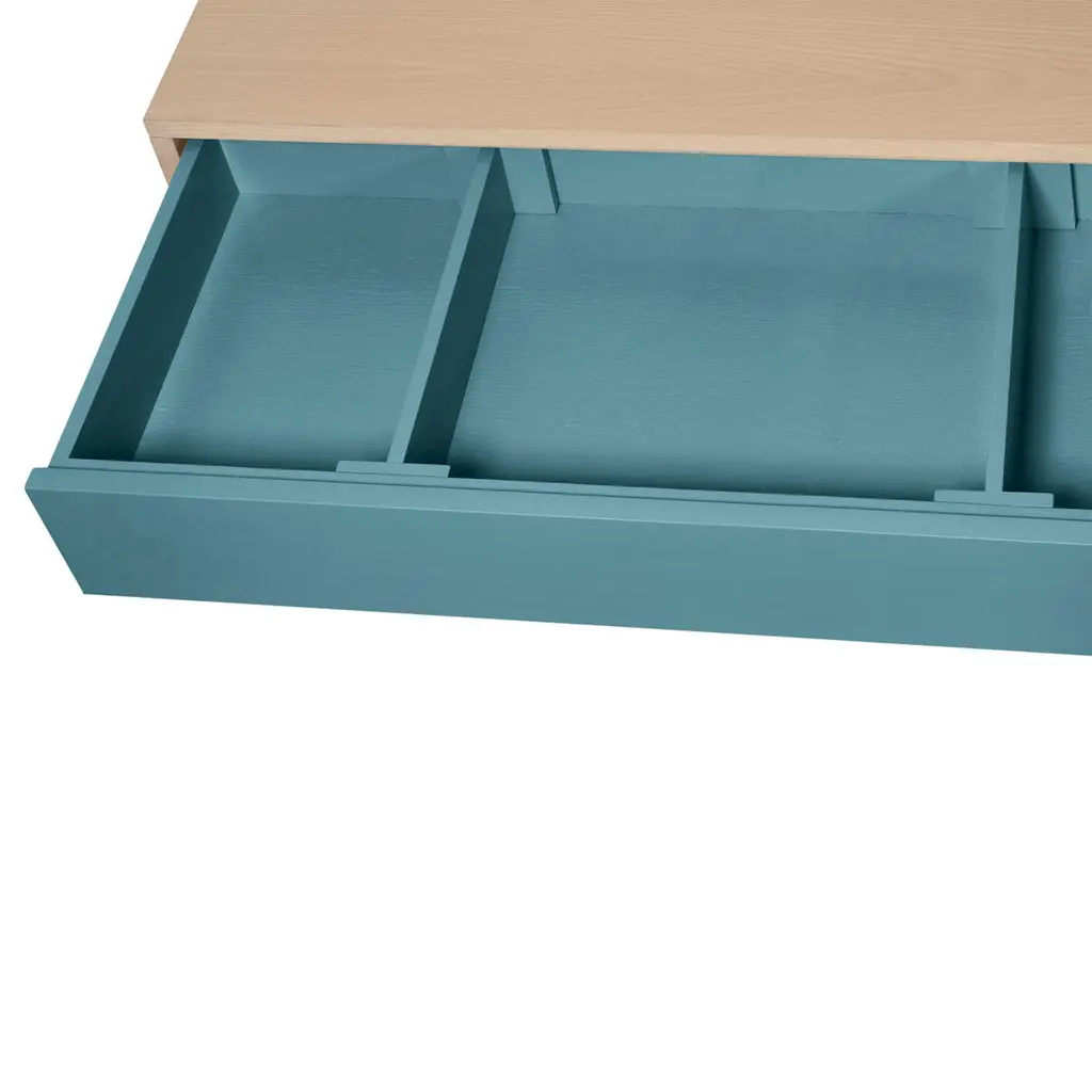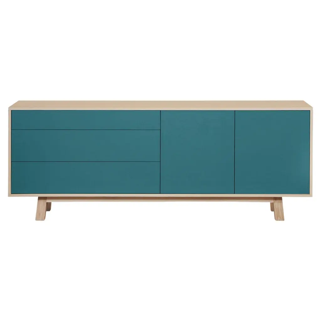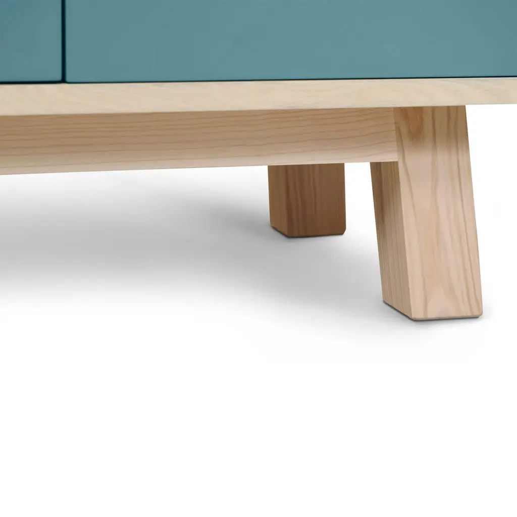 This 2-door, 3-drawer sideboard is presented here in ash wood and also available in French oak.No assembly is required from your side, the furniture is fully mounted in our workshop.The 3 drawers take up half the total length. The drawers fronts are solidly assembled with dovetail joints. The top drawer is lower than the other 2 and features 2 removable interior wooden dividers. The 2 lower drawers are normal drawers without dividers. Behind the 2 hinged doors, 1 height-adjustable shelf on cleats is supplied with the sideboard. To prevent damage during transport, it is positioned at the bottom of the buffet. All you have to do is place it on the cleats (supplied) at the desired height upon reception. Doors and drawers open with a « push & release » pressure on front.ÉGÉE COLLECTIONThis large & low 2-door 3 -drawer sideboard is part of the ÉGÉE collection, designed by the Parisian designer Eric GIZARD who here adopts the refined codes of Scandinavian design. combining natural materials, elegance and sobriety of lines by adding very beautiful muted and "trendy" colors.Inside the ÉGÉE collection, the KUBE concept is designed to offer an optimized and aesthetically pleasing storage concept.MON PETIT MEUBLE FRANÇAISoffers you 100% French products. The solid wood comes exclusively from sustainably managed French forests.The manufacture and finishes are of very high quality, carried out in French workshops in Mayenne, France.