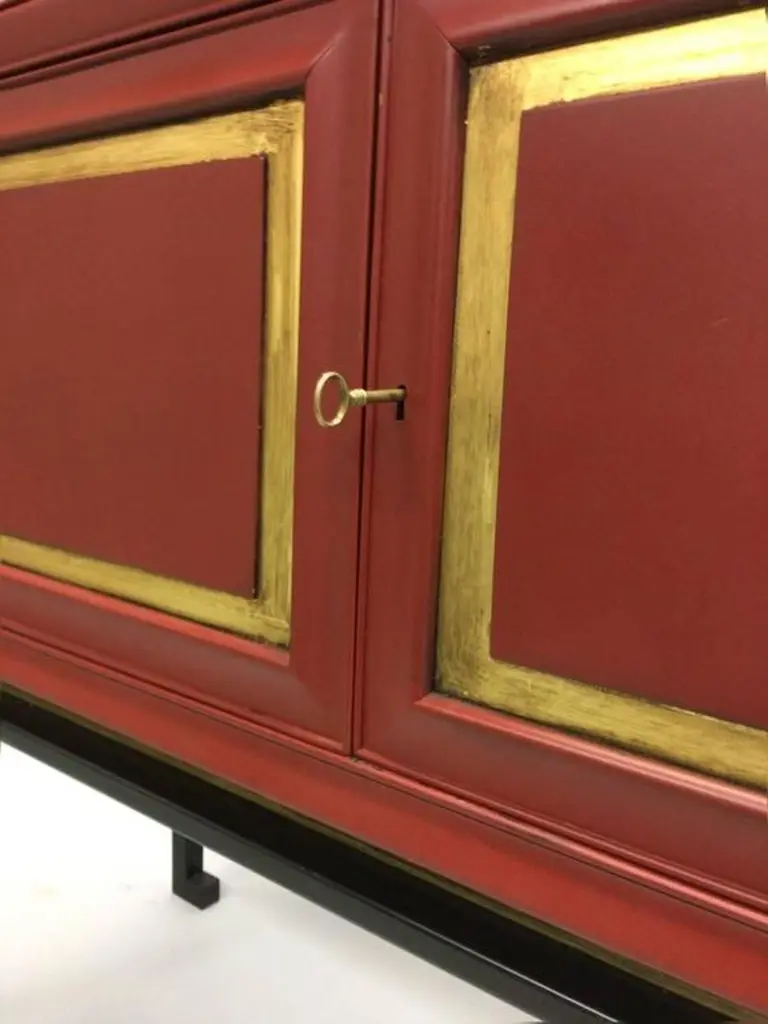 French Modern Neoclassical Chinese Red Lacquer Sideboard By Jacques Adnet
