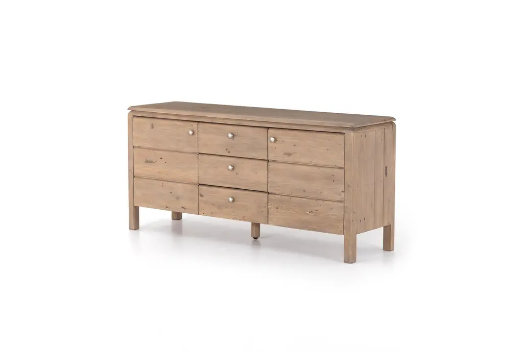 Introducing the FSC Reclaimed Wood 3 Door + 2 Door Sideboard, a perfect blend of modern style and rustic charm. Crafted from mixed reclaimed wood, this sideboard in scrubbed teak color offers a soft, neutral tone that complements any kitchen or dining room decor. Fully assembled and featuring ample storage drawers, it provides both functionality and aesthetic appeal.