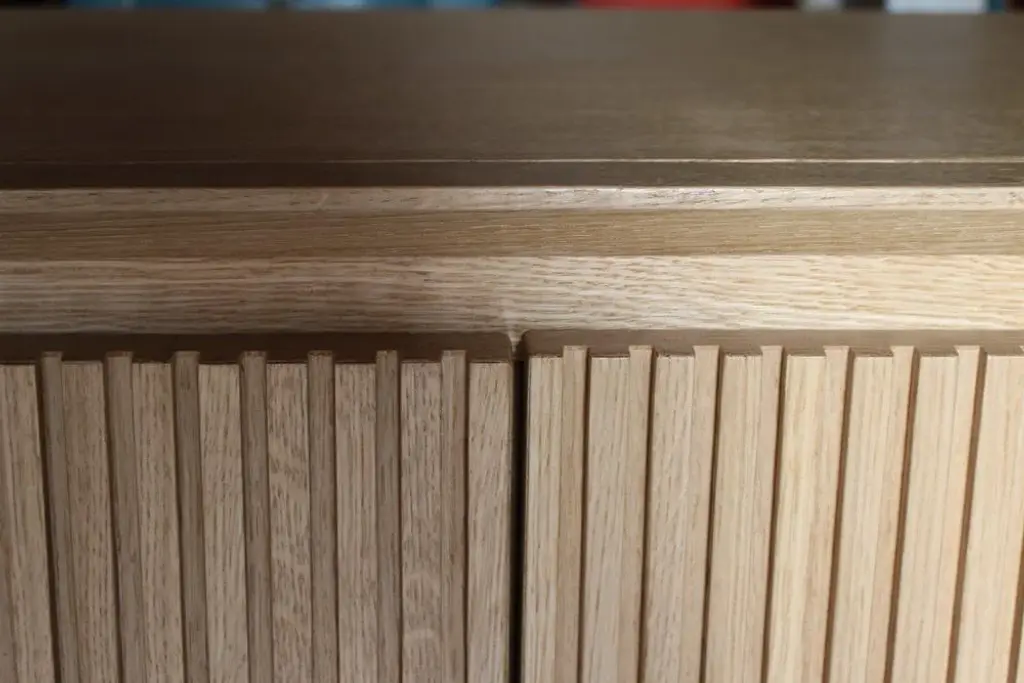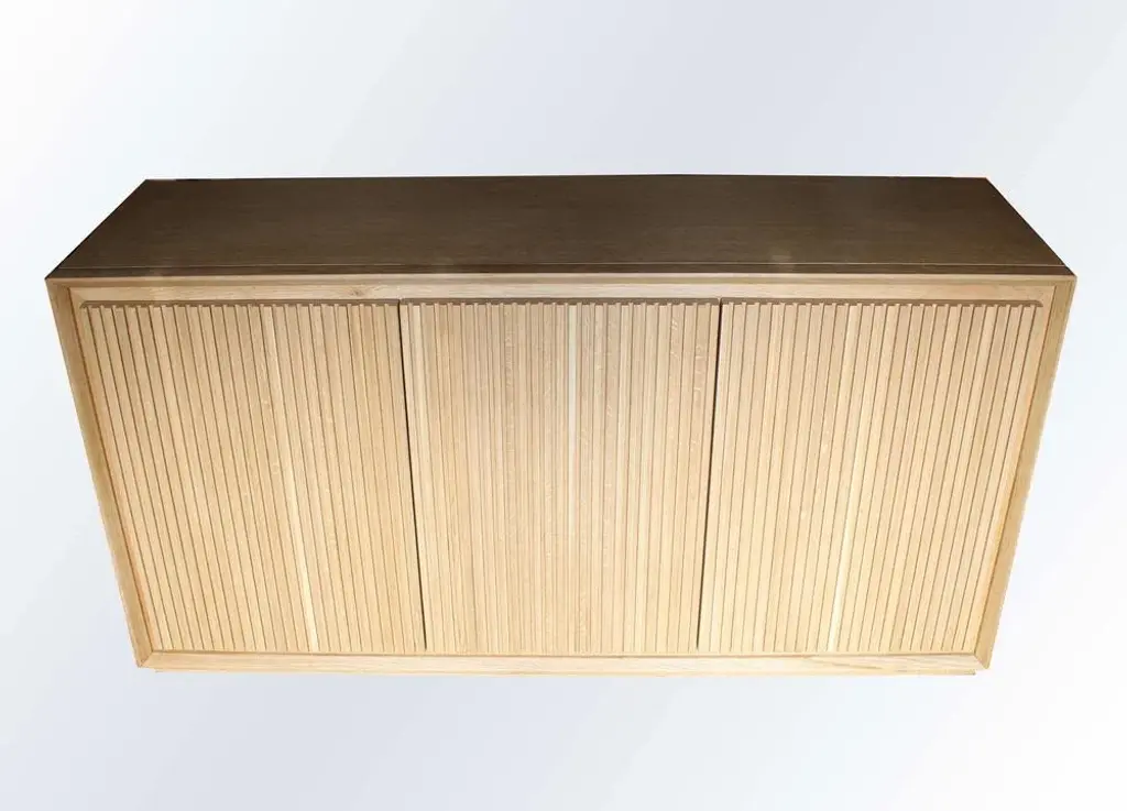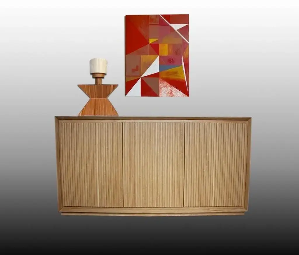 Mascia Meccani's "escape" belief for Meccani Design. Belief with three doors and two internal shelves. In oak. Labeled by Maker