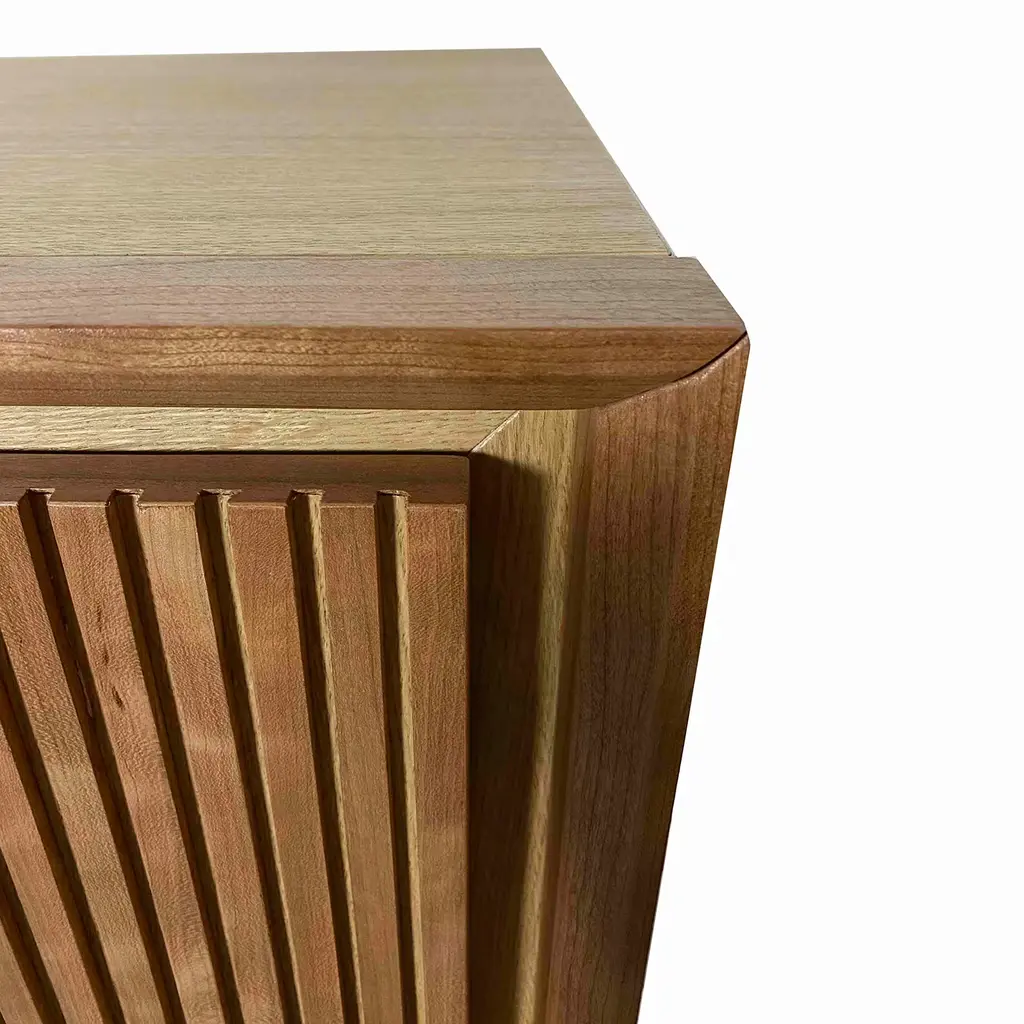 Part of a limited edition of 10 pieces created in 2021 by Mascia Meccani, this wall sideboard showcases a clean and essential design of Nordic inspiration. Handmade of durmast and cherry wood, it features three doors and two inner shelves. It is a sophisticated way of furnishing a contemporary interior with just a hint of nostalgia.