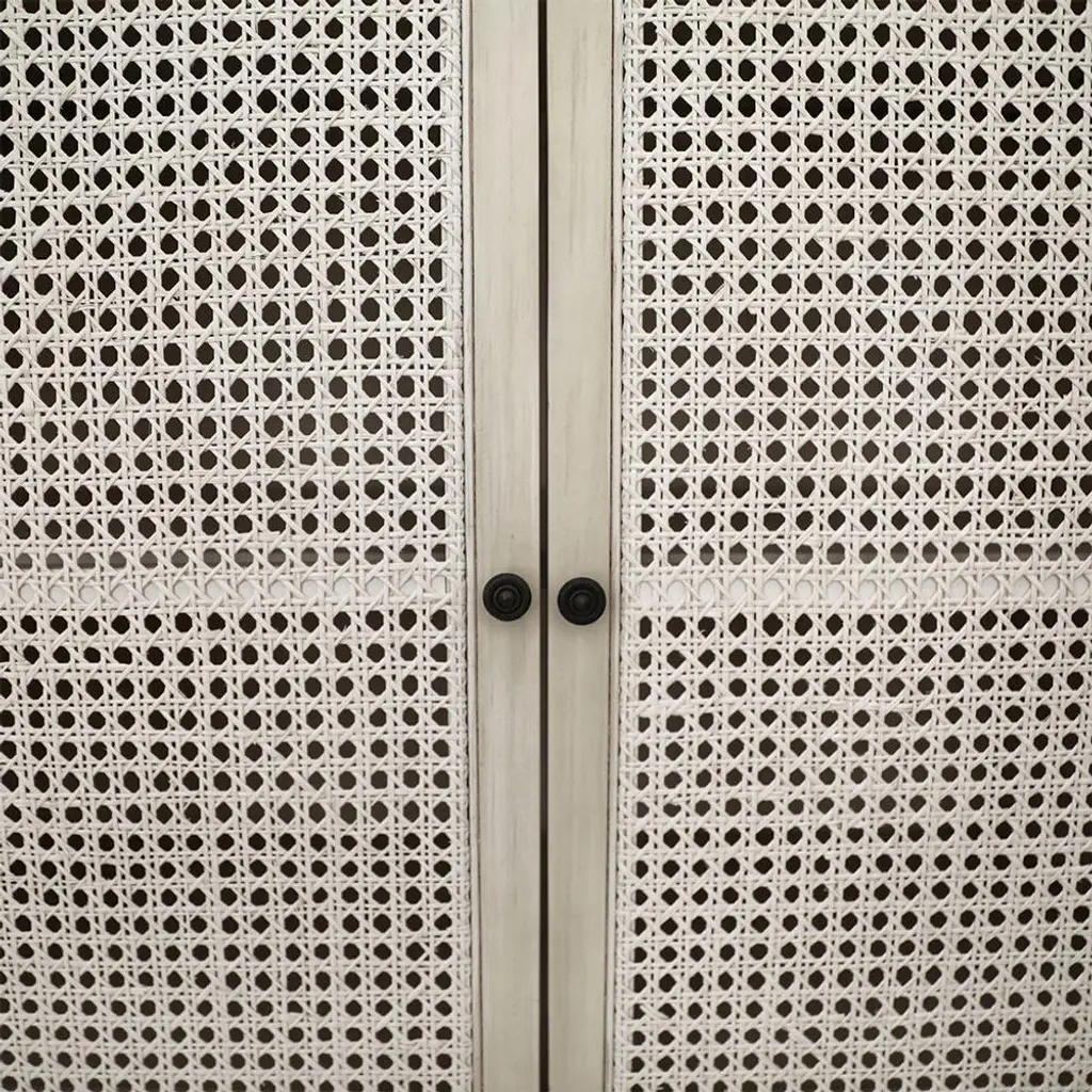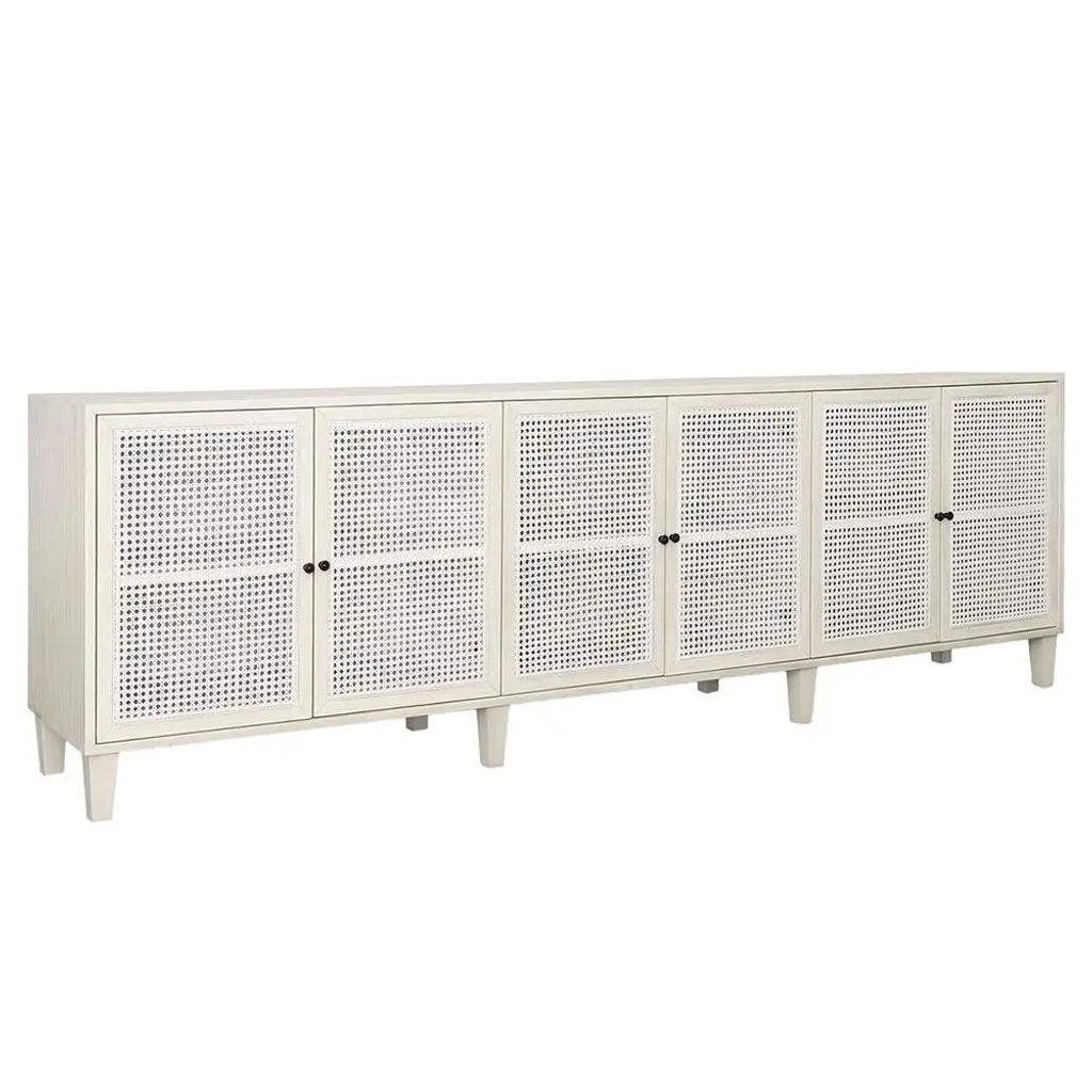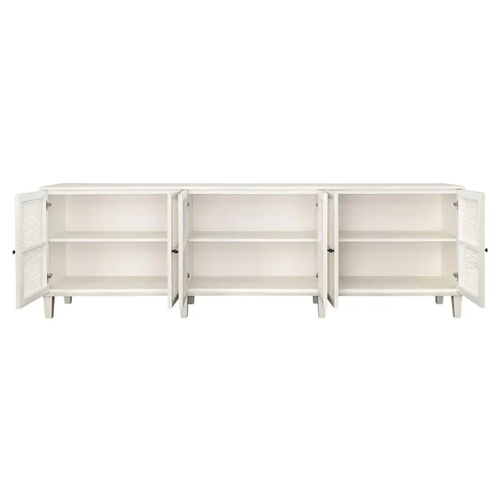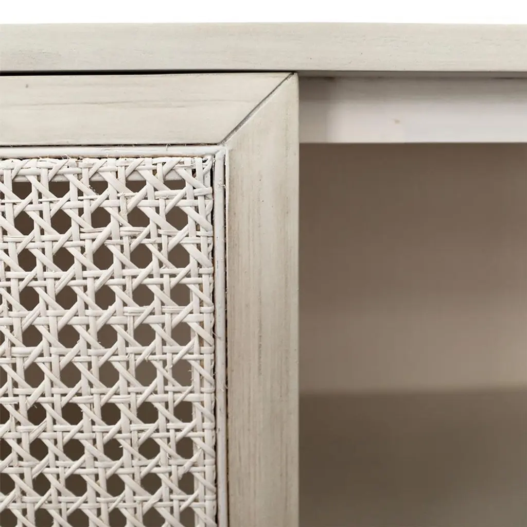 Gabriel Coastal Beach White Acacia Wood Woven Rattan Sideboard - 109"