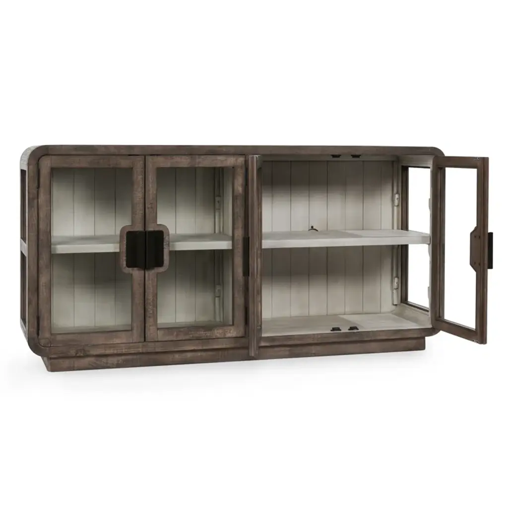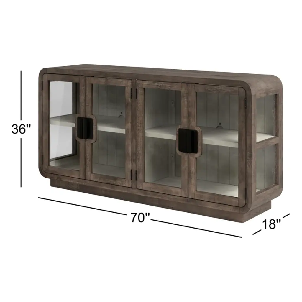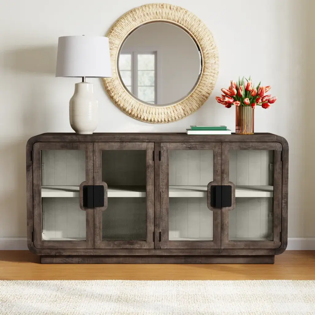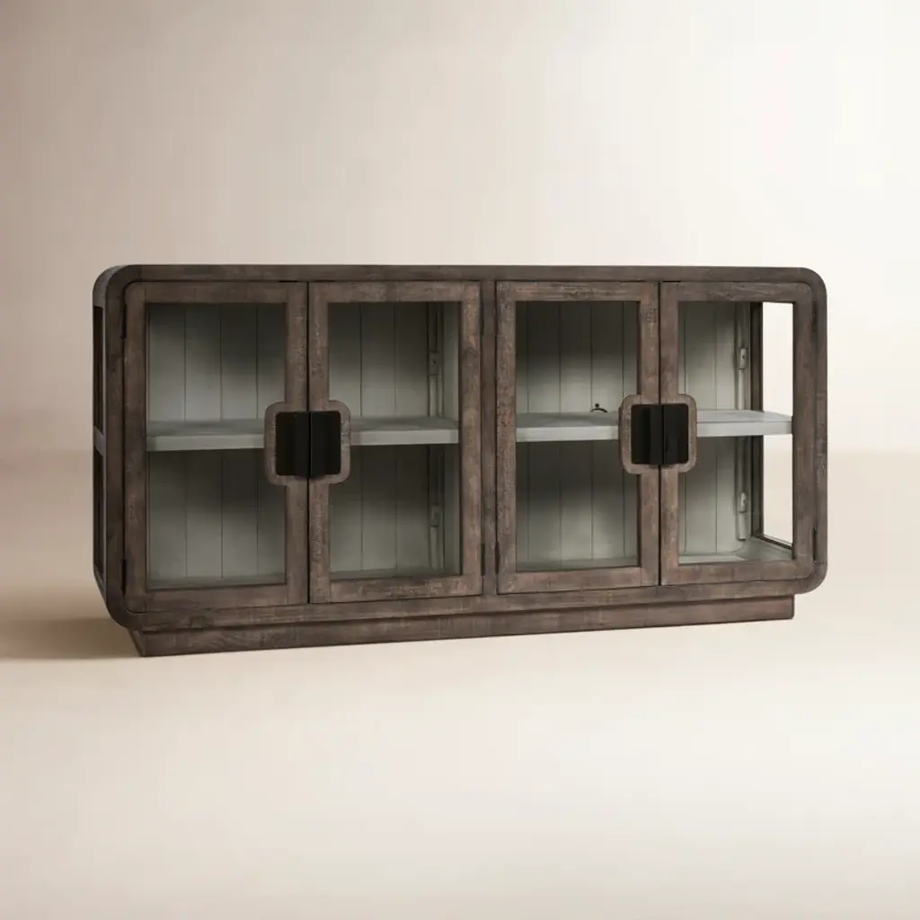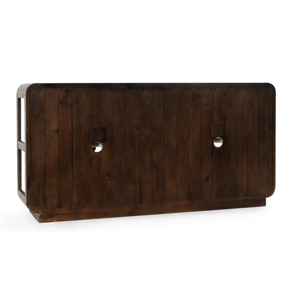 This solid wood sideboard is a versatile addition to your dining room or living space. Made from pine, it features four doors with magnetic catches that open to reveal adjustable shelves, offering ample storage for dinnerware, linens, and more. Plus, the cable management system keeps your space looking neat and organized. With its warm, natural finish, this sideboard is a great blend of form and function, creating a cozy and inviting atmosphere in your home.