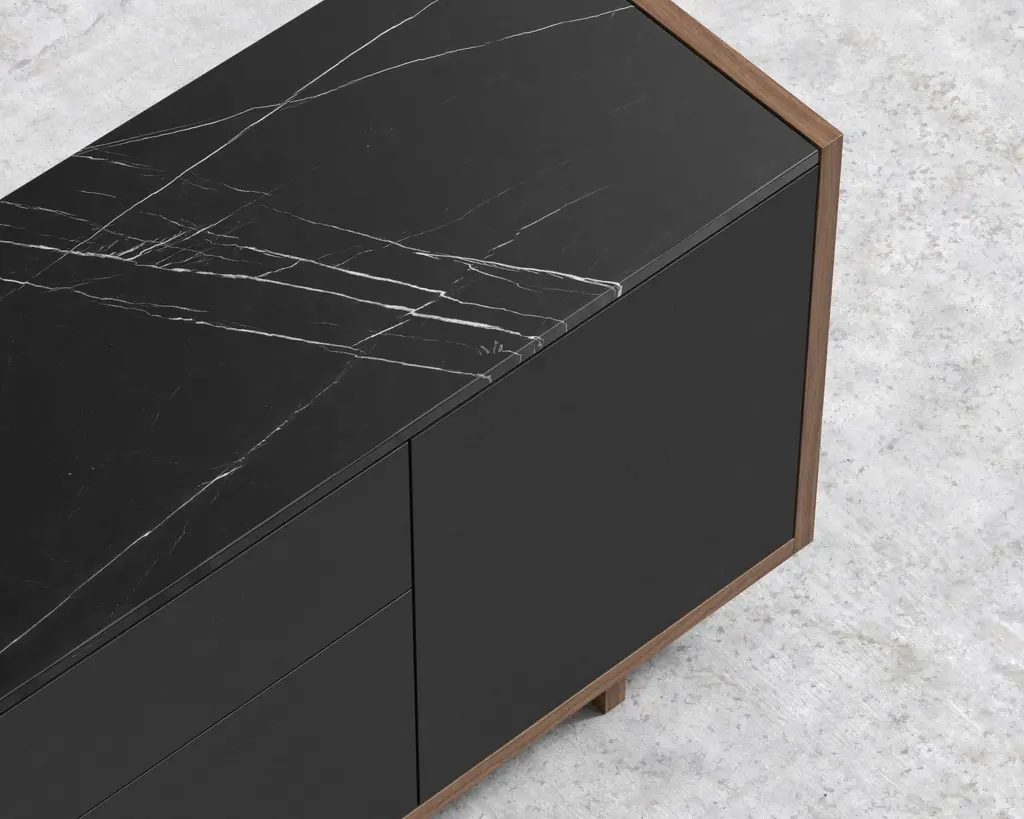 Breathtaking and intriguing, the Gia draws you in with its elegant and architectural silhouette. Like a waterfall, the smooth walnut cascades down the sides while the marble top anchors the storage unit. The Gia Desk Storage combines functionality and luxury into any space. Pair with the Gia Desk for the ultimate workspace.