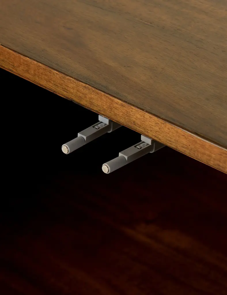 Clad in acacia, the soft lines of the Gilda sideboard are reflected in the curved feet, offering a sturdy design with a gently rounded profile that feels sculptural yet grounded. This sideboard cabinet features four push latch doors, providing ample storage for dishes, linens, and other essentials.