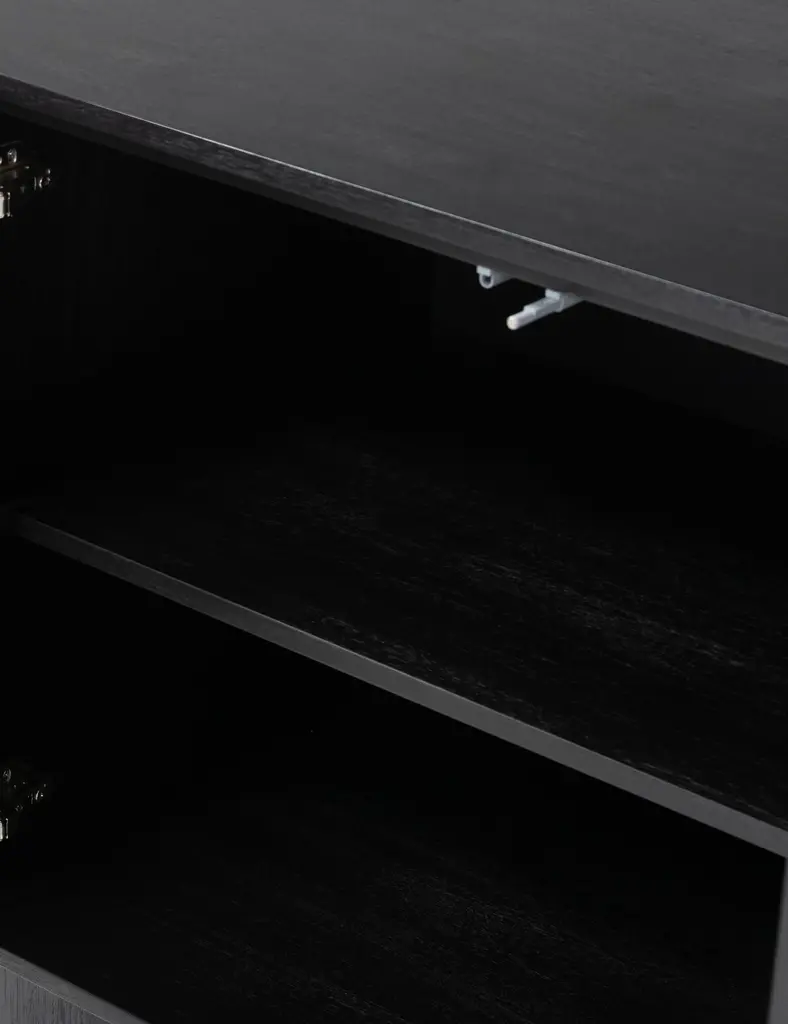 Clad in acacia, the soft lines of the Gilda sideboard are reflected in the curved feet, offering a sturdy design with a gently rounded profile that feels sculptural yet grounded. This sideboard cabinet features four push latch doors, providing ample storage for dishes, linens, and other essentials.