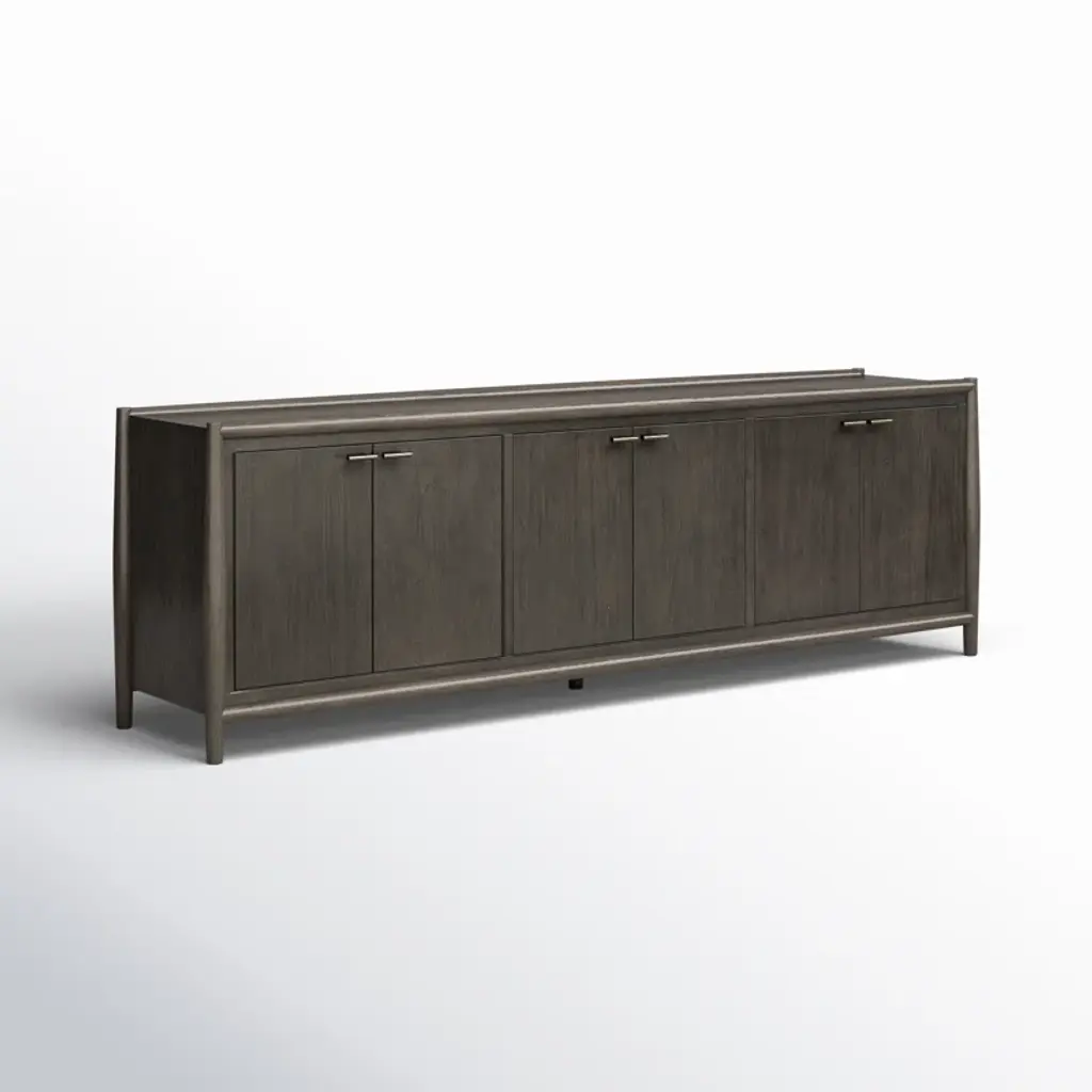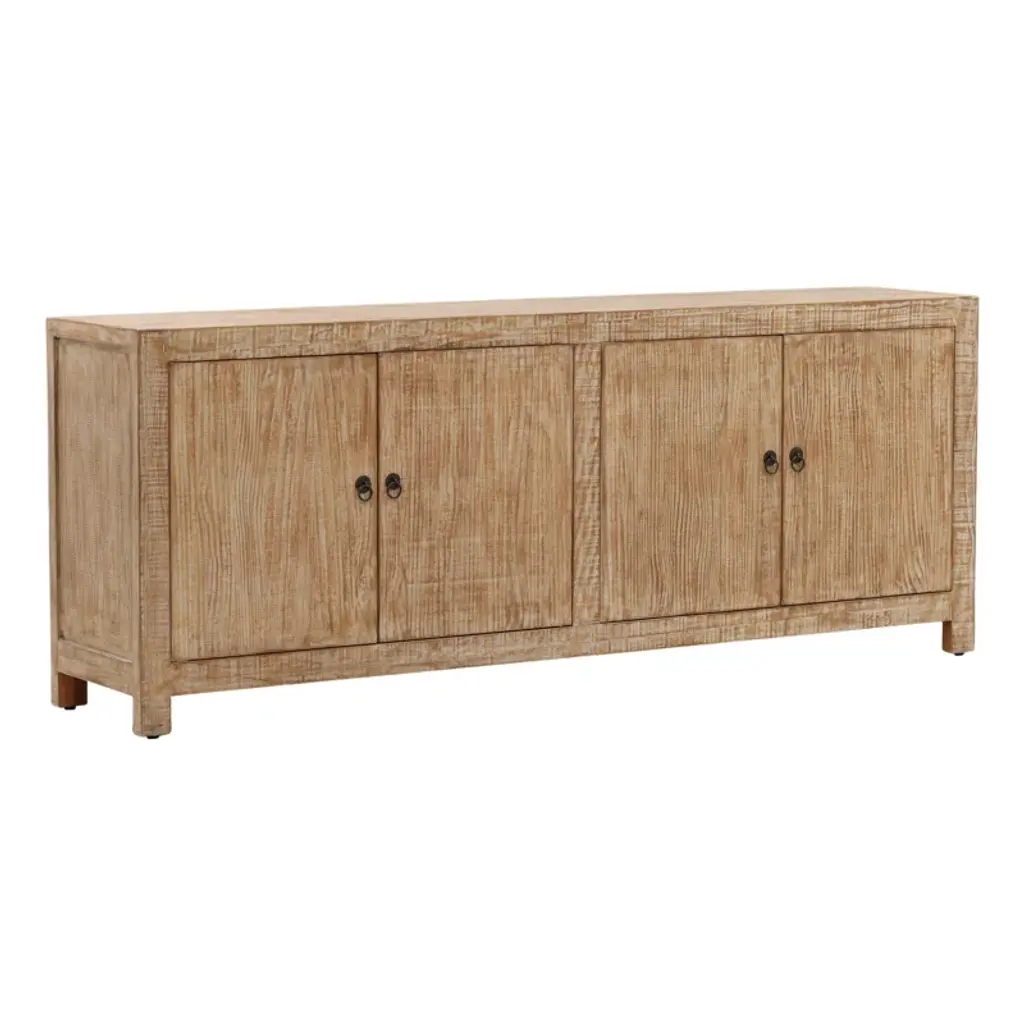 Traditional, reimagined. Made from rustic weathered oak, a six-door sideboard brings generous storage space to the dining room and beyond. Simple cylindrical hardware is finished in an aged bronze.