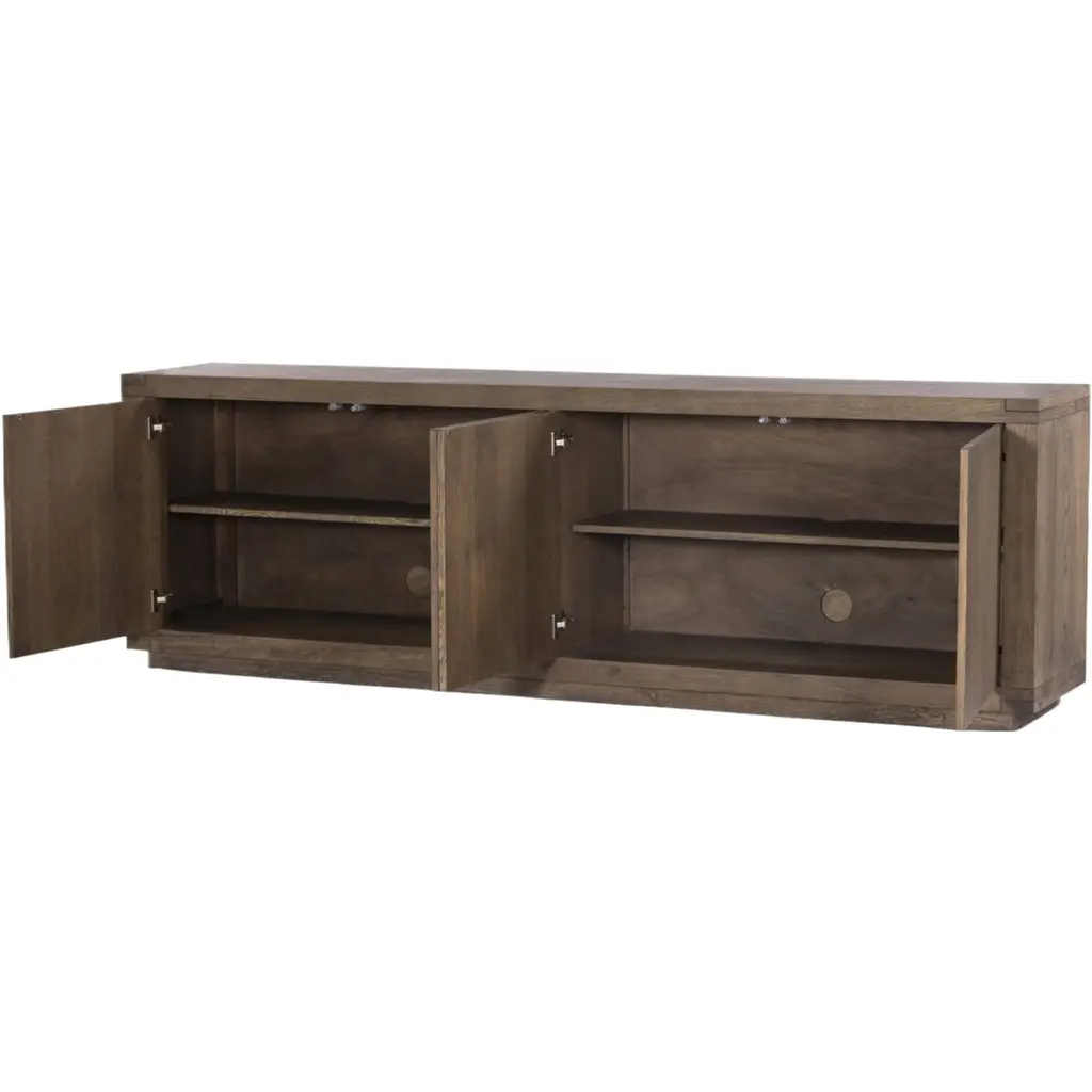 The Grady Sideboard presents a streamlined box-style design that exudes elegance and sophistication. Crafted with meticulous attention to detail, it features lap joint corners that add a touch of craftsmanship to its sleek silhouette. This sideboard is a perfect blend of form and function, offering ample storage space while enhancing the aesthetic of any room with its refined design.