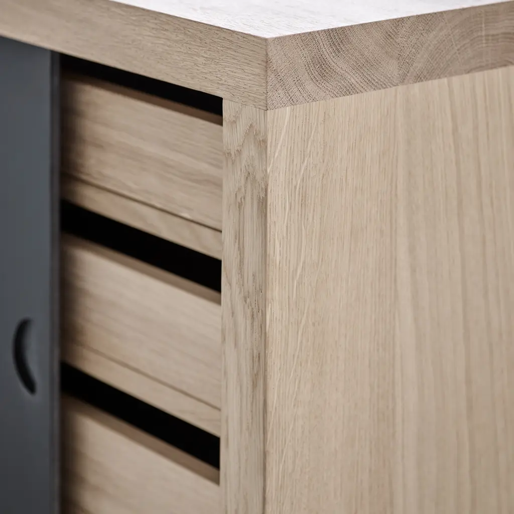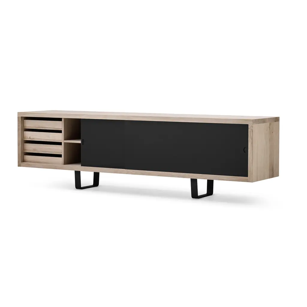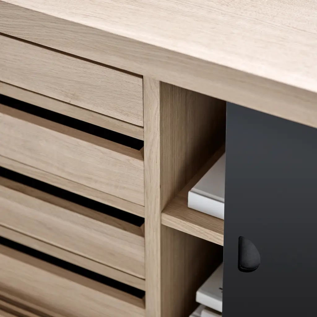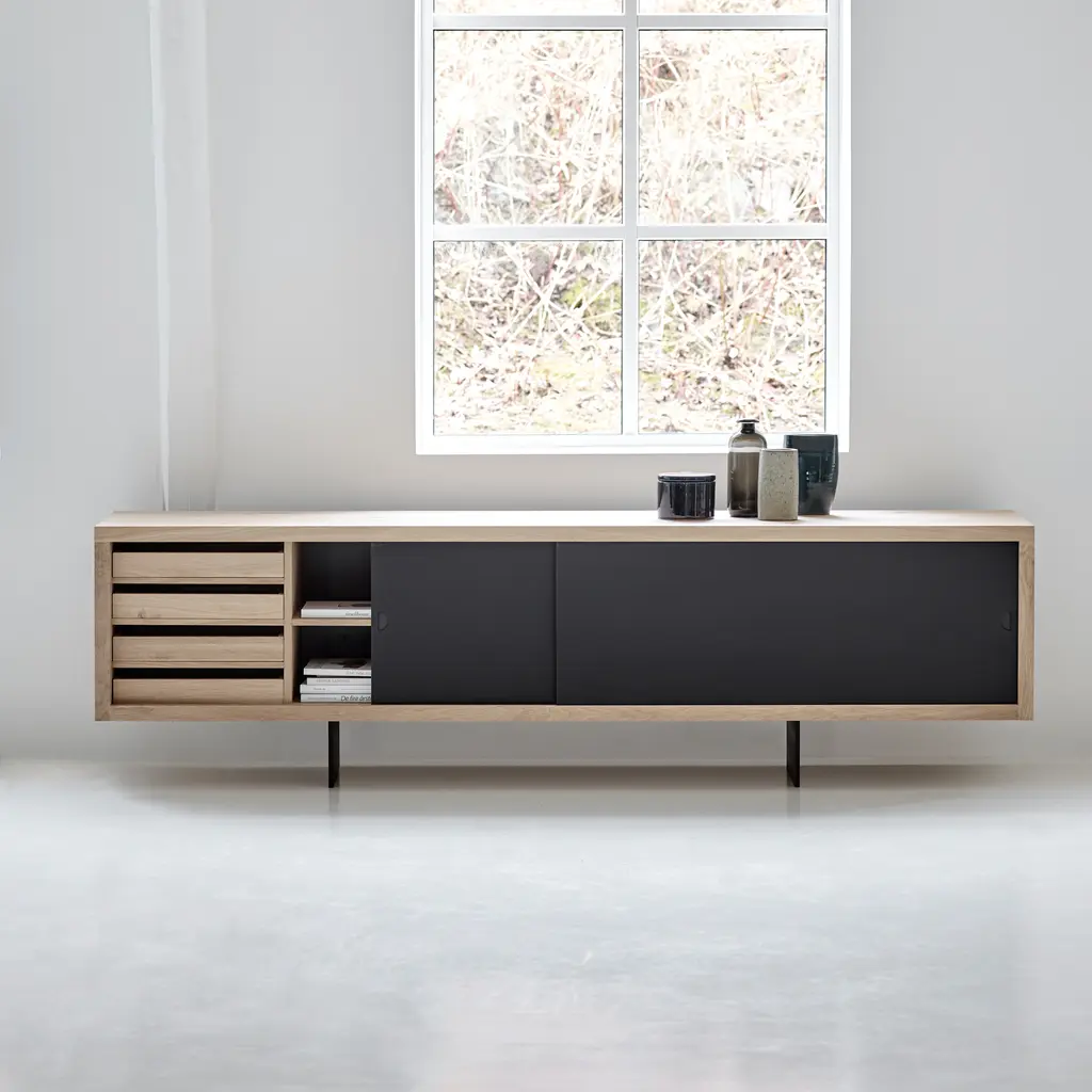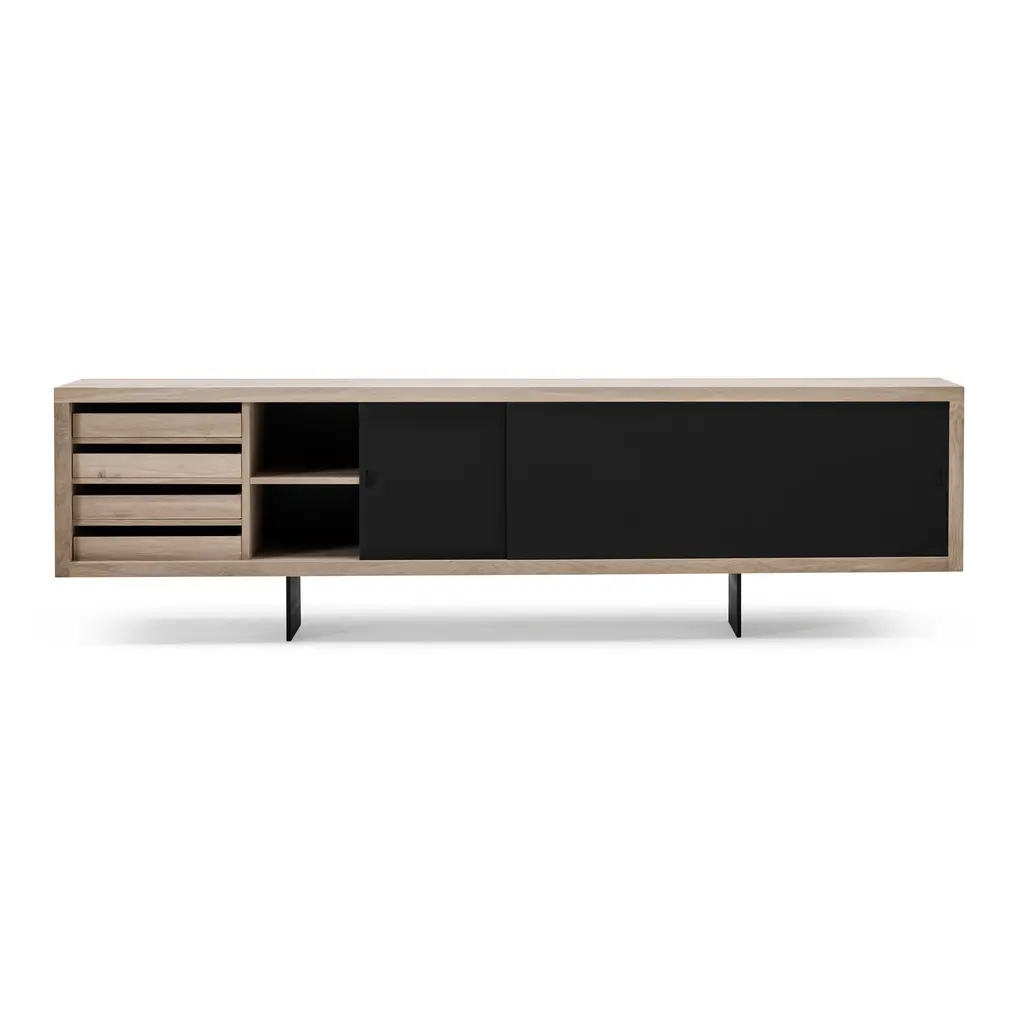 Supersize your home’s storage solutions while keeping things classy with the Grand Sideboard from Danish brand dk3. Designed by company founder and designer Jacob Plejdrup, this extra-large sideboard maximizes function and convenience. Minimalist and elegant, the impressive sideboard boasts a solid wood oak or walnut build – a rarity in the modern furniture industry. Drawers and shelves offer generous storage space for a wide range of items, whether in a living room or a bedroom. The sliding doors made of nano laminate come in various colors and feature a durable, wear-resistant surface that requires virtually no maintenance. This sideboard comes in oak, wild, oak, smoked oak, or walnut. Other storage solution from dk3 along with seating and tables are also available.