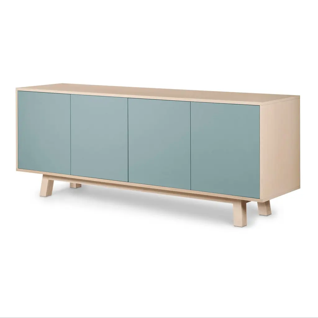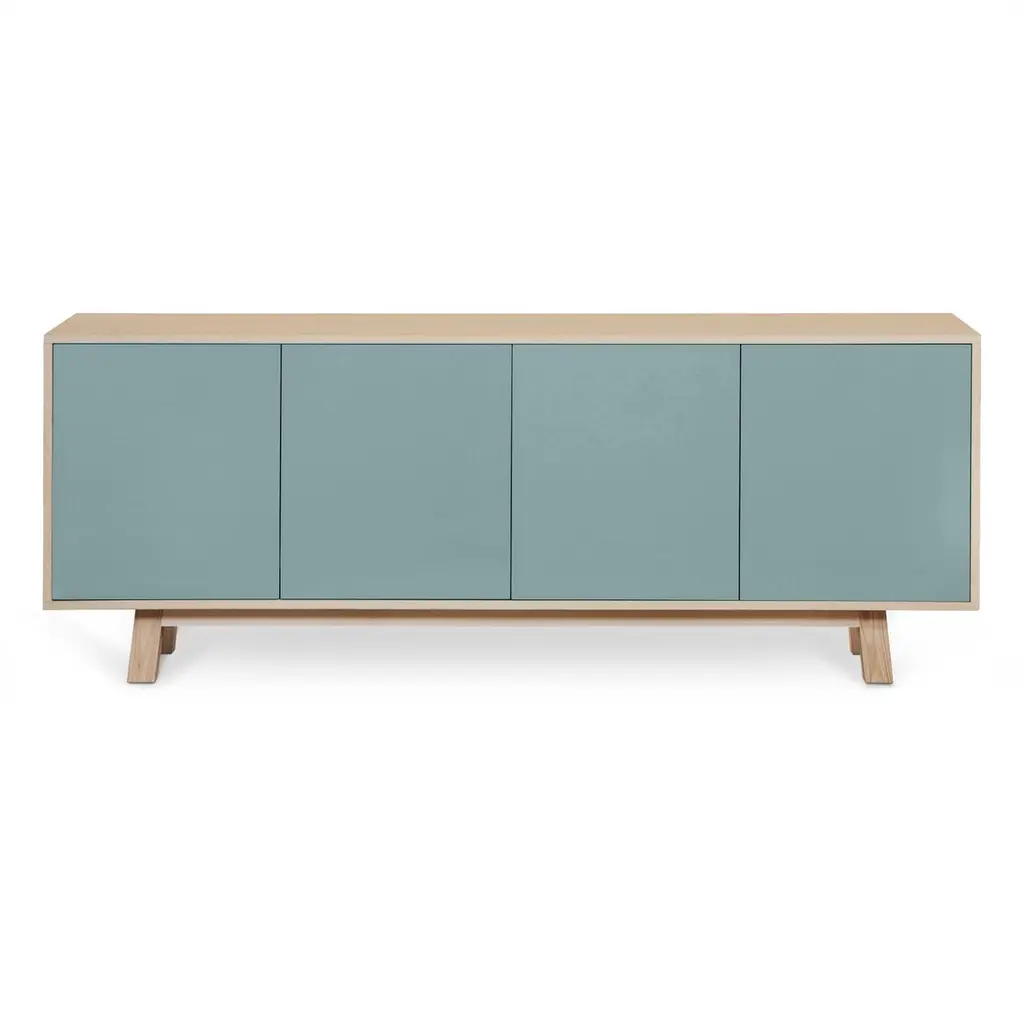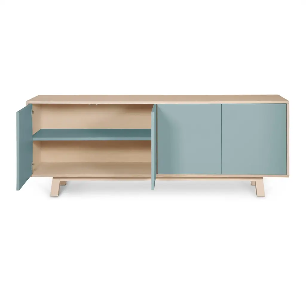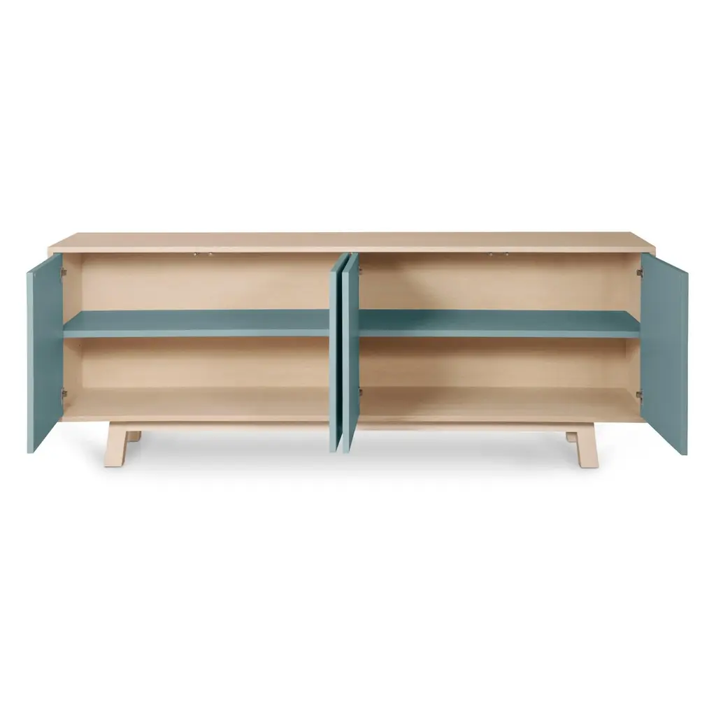Gray Blue 4-Door Low Wooden Credenza, Scandinavian Design By Eric Gizard, Paris