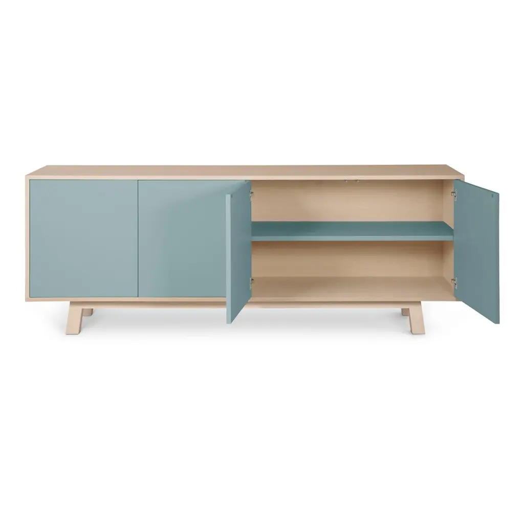 This 4-door sideboard is presented here in ash wood and is also available in French oak. No assembly is required from your side, our furniture is fully mounted in our workshop. 2 height-adjustable shelves are supplied with the buffet. To prevent damage during transport, they are positioned at the bottom of the buffet. All you have to do is place them on the cleats (supplied) at the desired height upon delivery.The 4 doors open with a « push & release » pressure on front.11 standard colors are available. Have a look at our color chart on the last picture. 5 standard lengths are available from 160 cm / 63.0" to 240 cm / 94.5". ÉGÉE COLLECTIONThis low large sideboard is part of the ÉGÉE collection, designed by the Parisian designer Eric GIZARD who here adopts the refined codes of Scandinavian design. combining natural materials, elegance and sobriety of lines by adding very beautiful muted and "trendy" colors.Inside the ÉGÉE collection, the KUBE concept is designed to offer an optimized and aesthetically pleasing storage concept.MON PETIT MEUBLE FRANÇAISoffers you 100% French products. The solid wood comes exclusively from sustainably managed French forests.The manufacture and finishes are of very high quality, carried out in French workshops in Mayenne, France.