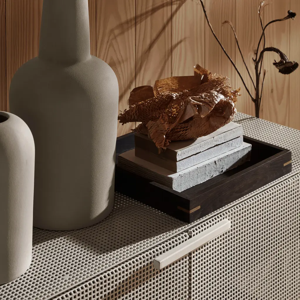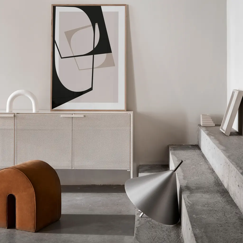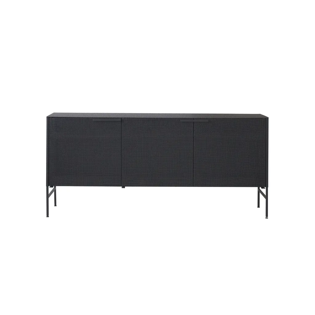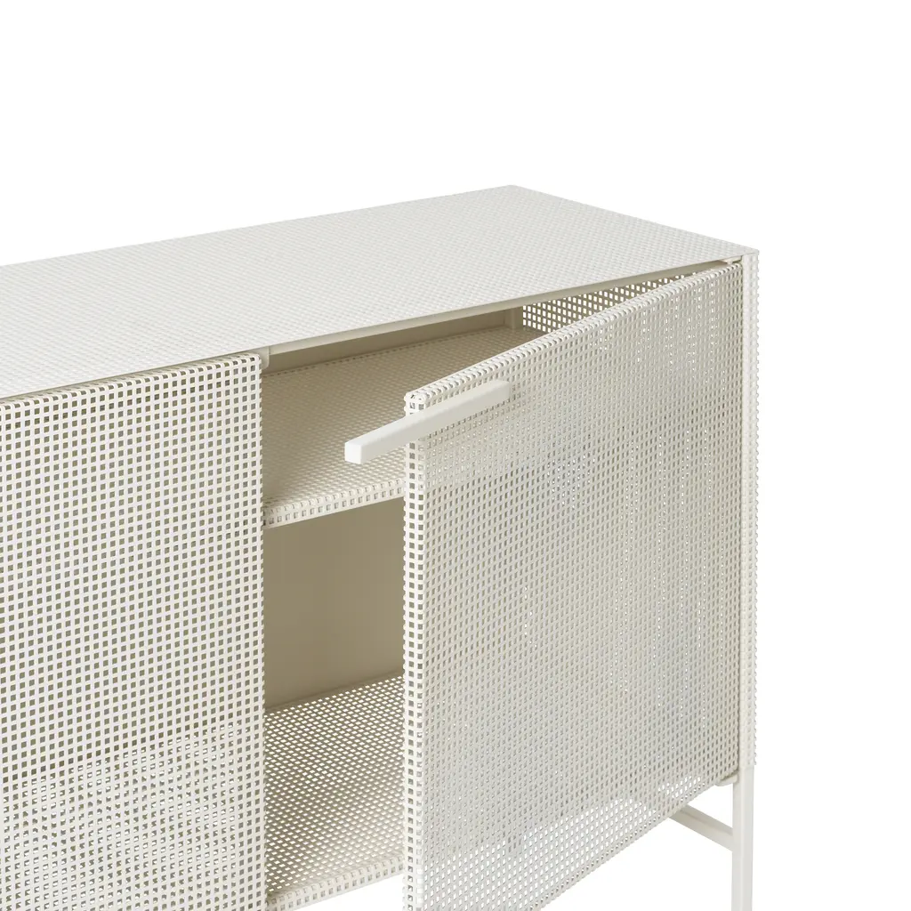 A modern sideboard that is as stylish as it is practical, the Kristina Dam Studio Grid Sideboard has a minimalist appearance to look fantastic anywhere. Versatile furniture at its best, this design can be used to store office supplies and stationery in a home workspace or as a modern buffet cabinet for tableware and glassware. Either way, the Grid Sideboard enhances any room’s design scheme with an understated elegance. Made from powder-coated steel, the sideboard features perforated panels on the sides, front, and top. As a result, this modern sideboard buffet has an airy look, even in the black version. As for the interior, it offers plenty of room for items like books, plates, clothing, or desk and office accessories thanks to two fixed shelves. Finally, the Kristina Dam Studio Grid Sideboard features three doors that open smoothly and close securely thanks to a magnetic lock.