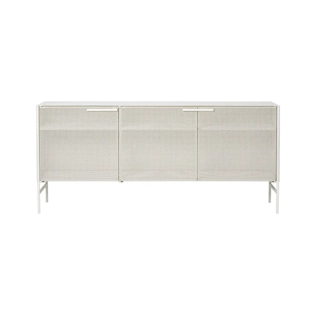 Grid sideboard by Kristina Dam StudioMaterials: Beige outdoor powder-coated steelDimensions: 160 x 72 x 36 cmKristina Dam graduated from The Royal Danish School of Fine Arts, Architecture and Design in Copenhagen. In her designs you will find her great love for architecture and minimalistic graphic lines.Everything originates from Kristina’s passion for design and art. She will find her inspiration when travelling, browsing Pinterest, blogs, Instagram and talking to people.Her first product – a series of limited edition illustrations – quickly became a favorite in Scandinavian design stores, magazines and homes. Today Kristina Dam Studio has developed into a design powerhouse of furniture and accessories. Two collections are launched every year and we collaborate with upcoming as well as established designers.Kristina Dam Studio was founded by graphic designer and architect Kristina Dam in 2012. The initial design idea for the studio was to create Industrial designs that had a more art-based approach. The idea of making art and interior design merge, both in furniture, accessories, art prints and illustrationsWe call our design approach for "Sculptural Minimalism". Designs by Kristina Dam Studio are graphic and architectural with a high level of details and excellent craftsmanship. Furniture from Kristina Dam Studio are mostly made from natural materials. We believe that mastering the monochromatic palette enable us to create timeless and enduring designs. Distinct and beautiful - simplicity with an attitude. Honest materialsWe only use honest, genuine, natural and carefully selected materials – and we treat them with respect. The majority of our collection is produced within the European Union. Our love for genuine materials is a part of our Nordic design inheritance – a legacy we take very seriously. Sculptural MinimalismThe major lines in the designs are graphic and architectural. A high level of details and pristine craftsmanship are key are well. Kristina Dam Studio furniture pieces are assembled with spigot joints and dowels and produced in natural materials. You’ll find the same love for details in all of your designs.A sculptural approach to designKristina Dam Studio aim to design products with at sculptural approach. Designs that have character, style and a bold expression that will add something extra to your interior. With each collection at least one new sculpture is launched. That sculptural quality and approach is visible in all our designs.