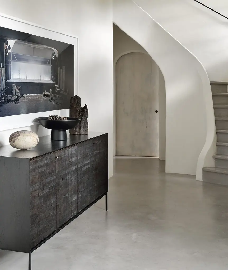The Grooves sideboard is soulful to say the least. Every single line you see is hand carved, making each piece truly unique. Small imperfections are part of the story, even more so: they enhance Grooves' character. The result is a slightly different surface every time, each with its own rhythm and dynamics. The beautiful dark tinted teak continues on the inside, where shelves will hold your most cherished objects.