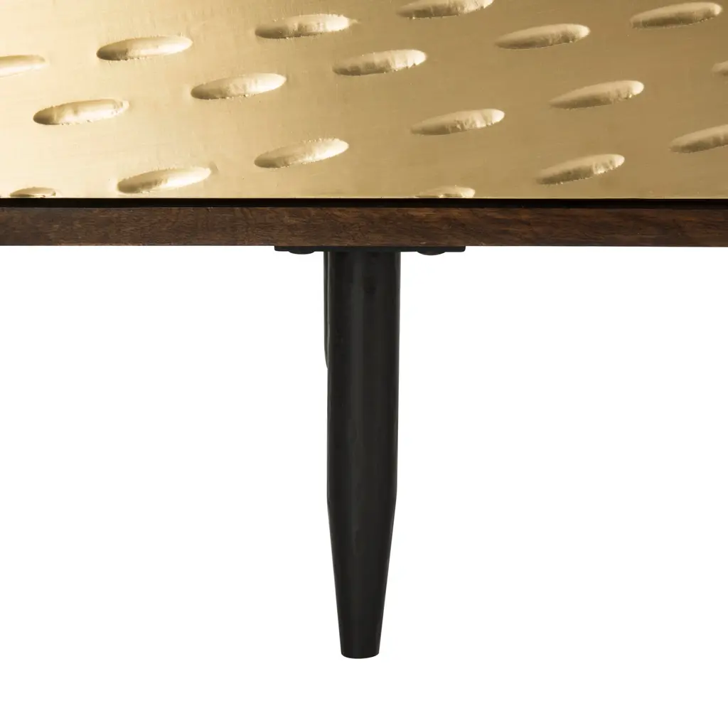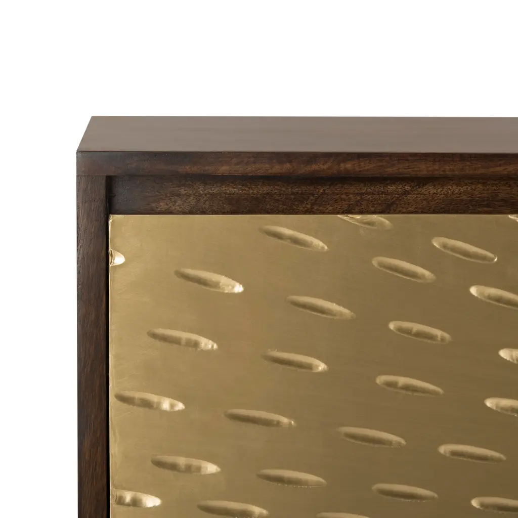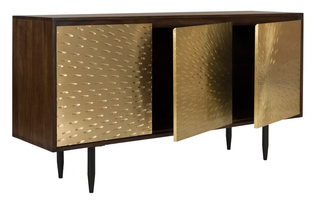 The guest of honor at any soiree, this brass sideboard is a modern heirloom. Inspired by the work metal artisans, it was crafted with a rich brown hue to showcase it's luxe brass metal finish. Ideal in any dining room, designers love it's radiant texture. Wipe with Clean & Dry Cloth. Some assembly required.
