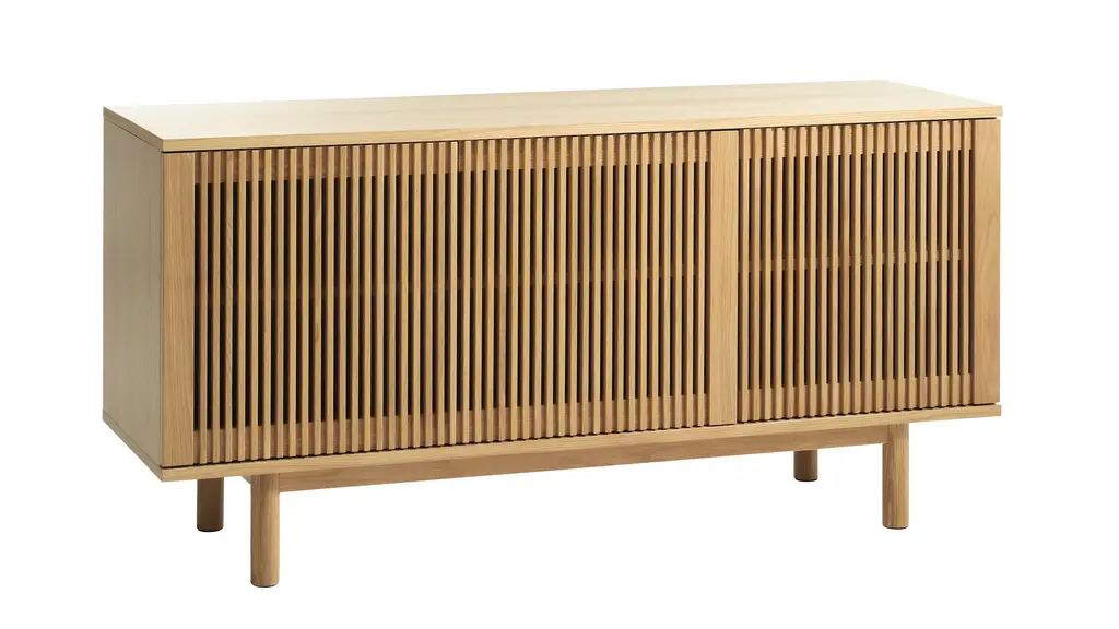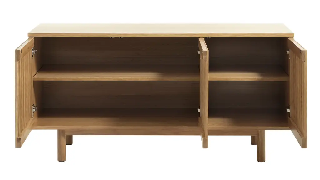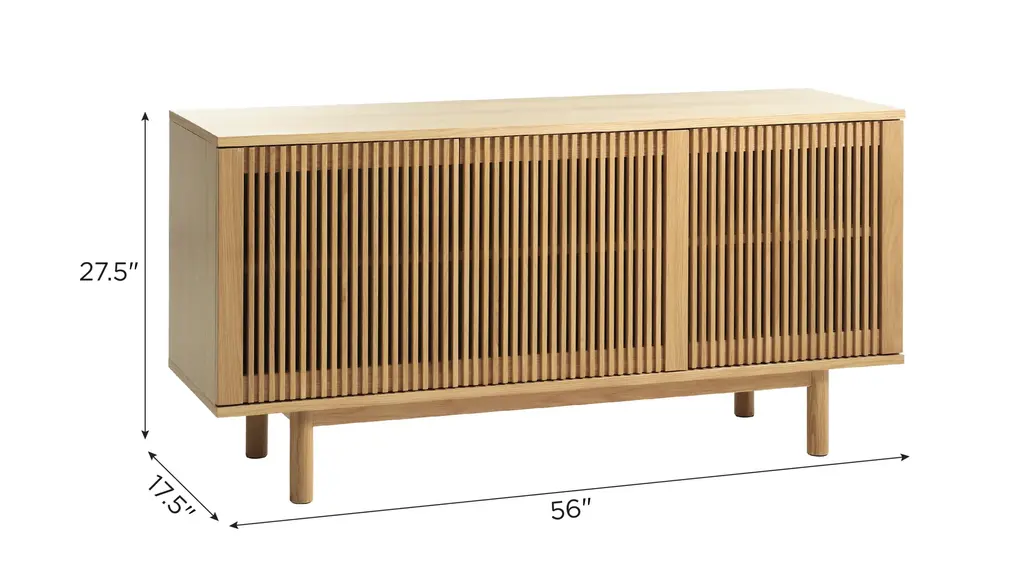 Embodying the essence of Nordic minimalism, the Halliday 56 in. Sideboard gracefully balance simplicity and refinement. The thoughtfully arranged panels create a gently translucent fa_ade, evoking a sense of curiosity. Crafted from a mix of white oak and Engineered wood, this sideboard exemplifies exceptional design, capturing an understated elegance.