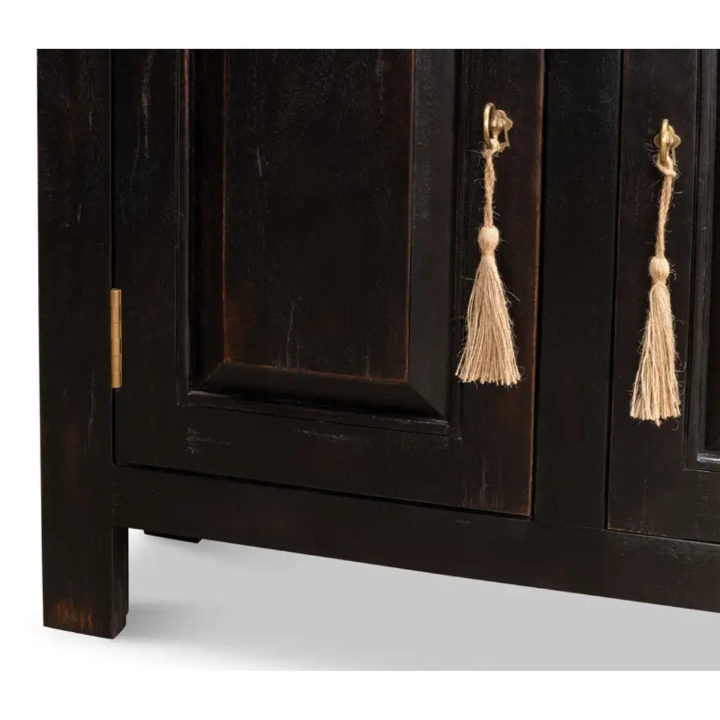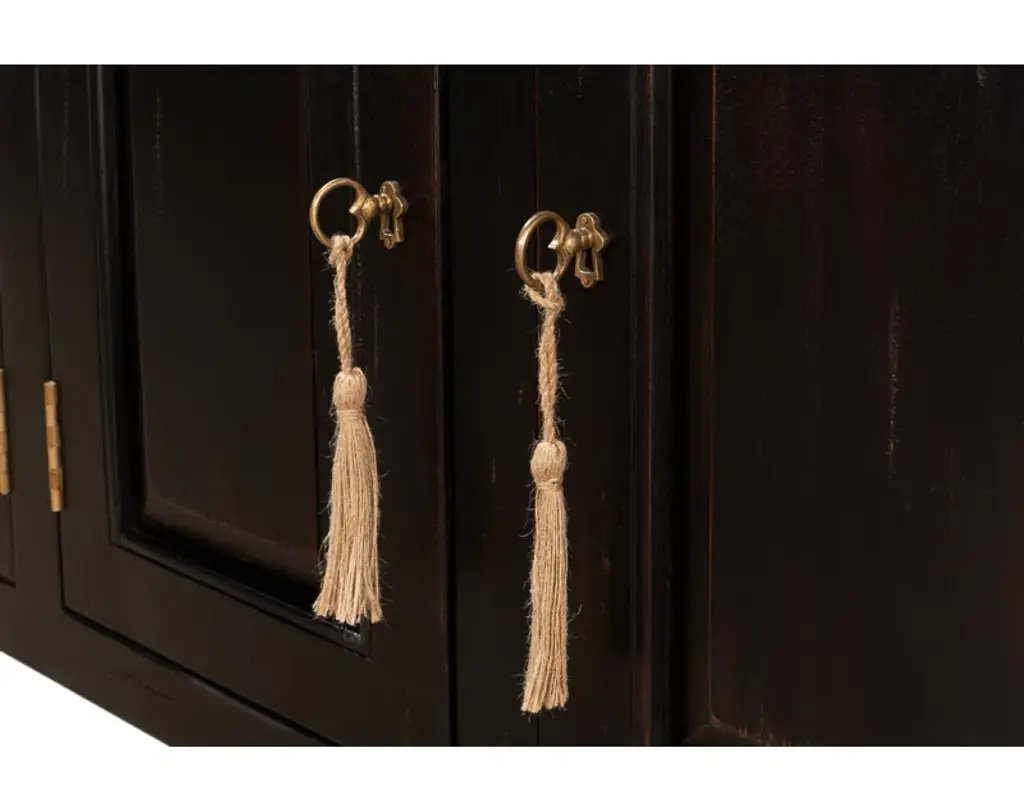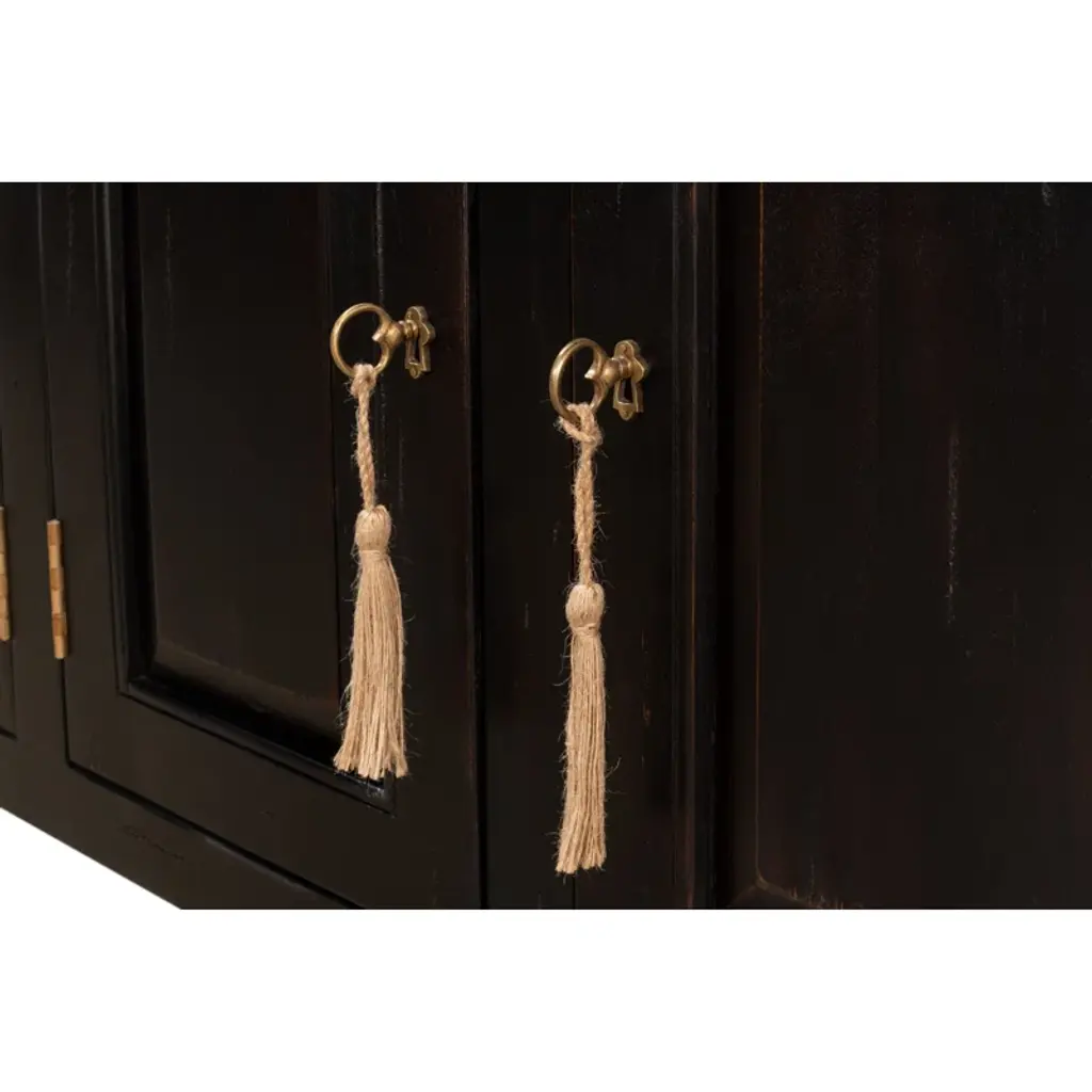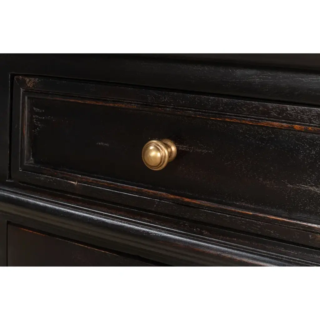 Remember when they said black and gold were going to be trending? We've done it for years. We think you will love this narrow 12" deep sideboard with the brass galley. Six doors and sides have raised panel details.
