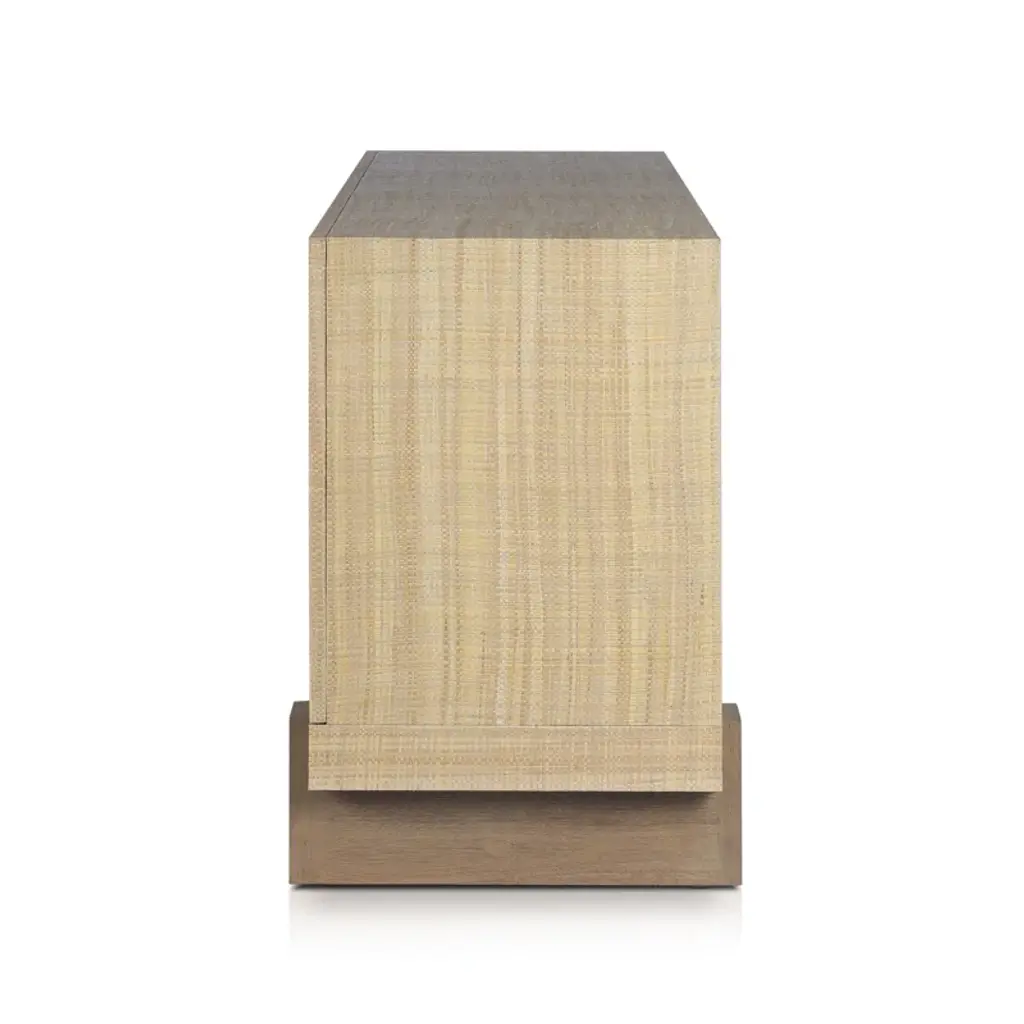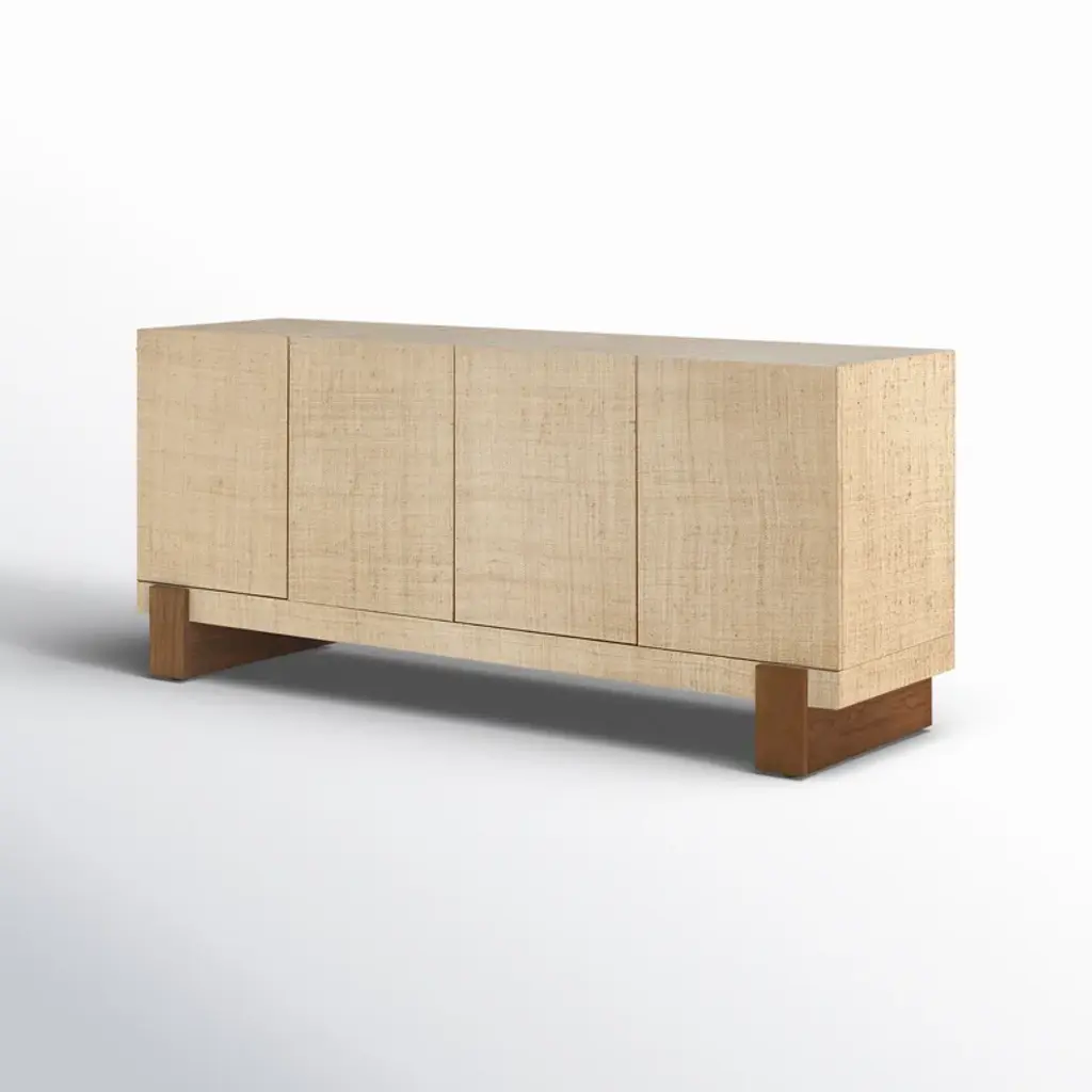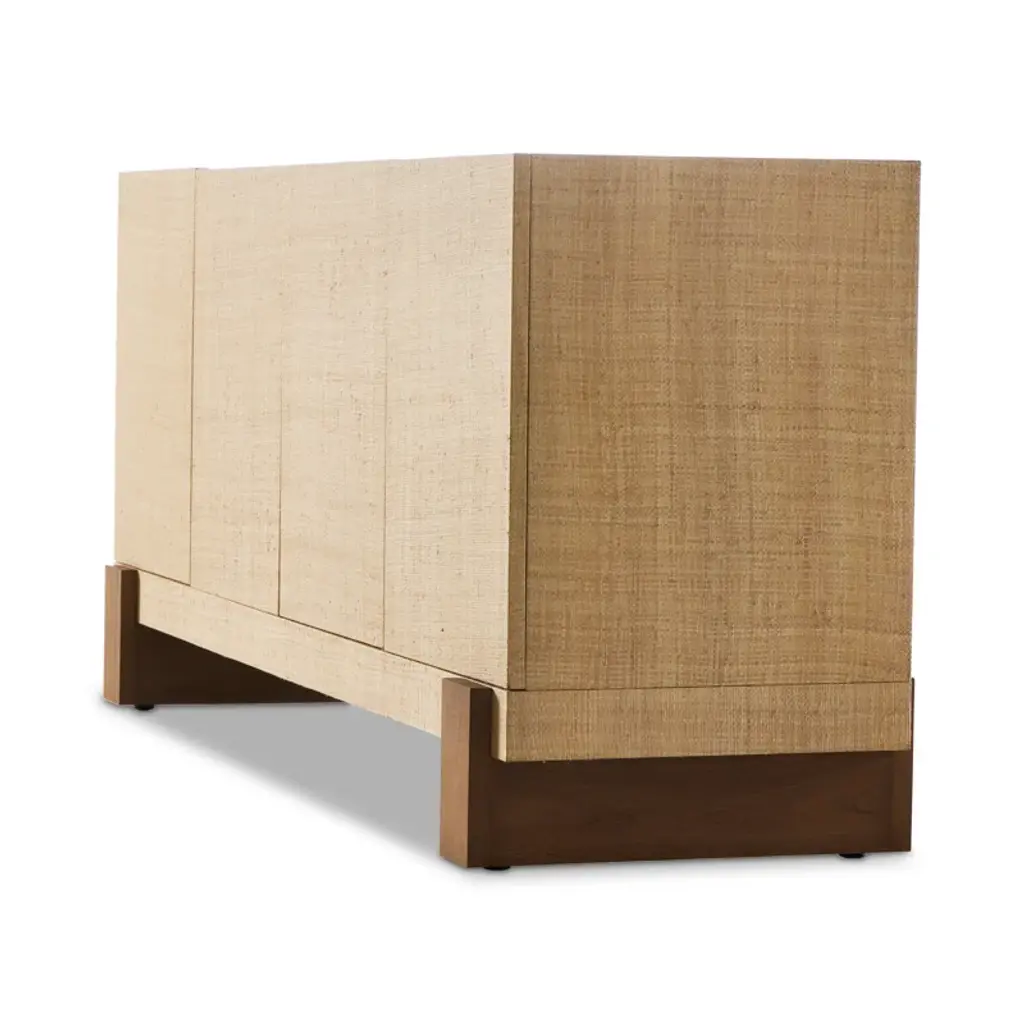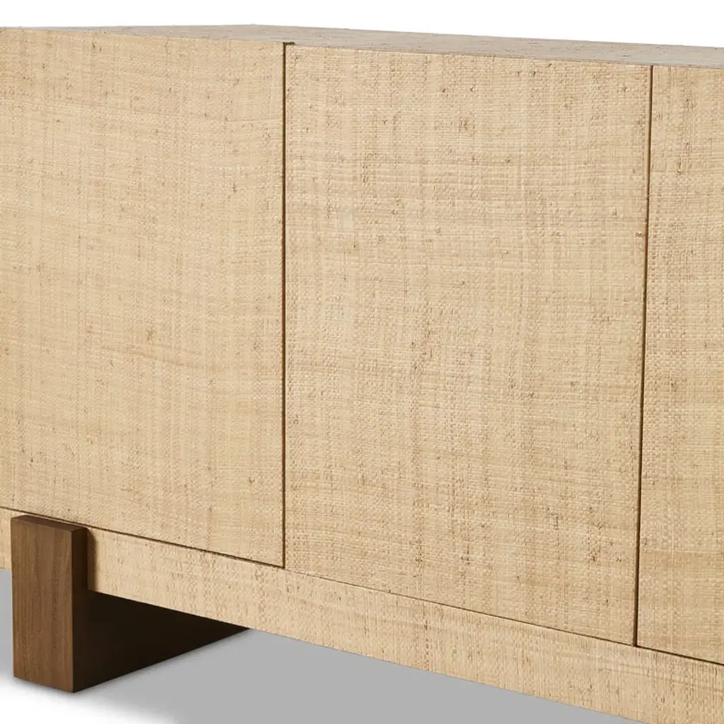 This sophisticated sideboard, crafted from a blend of solid and manufactured wood, offers ample storage with its multiple shelves and cabinets, hidden behind seamlessly integrated soft-close doors. Experience the perfect blend of functionality and elegance for your dining or living space.