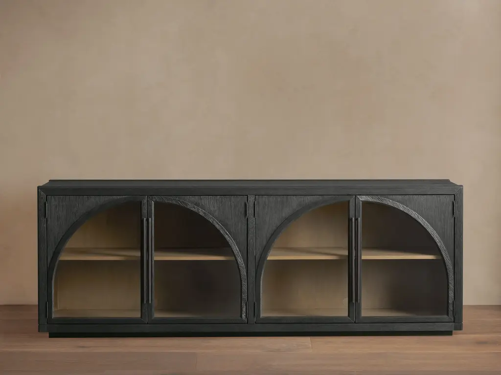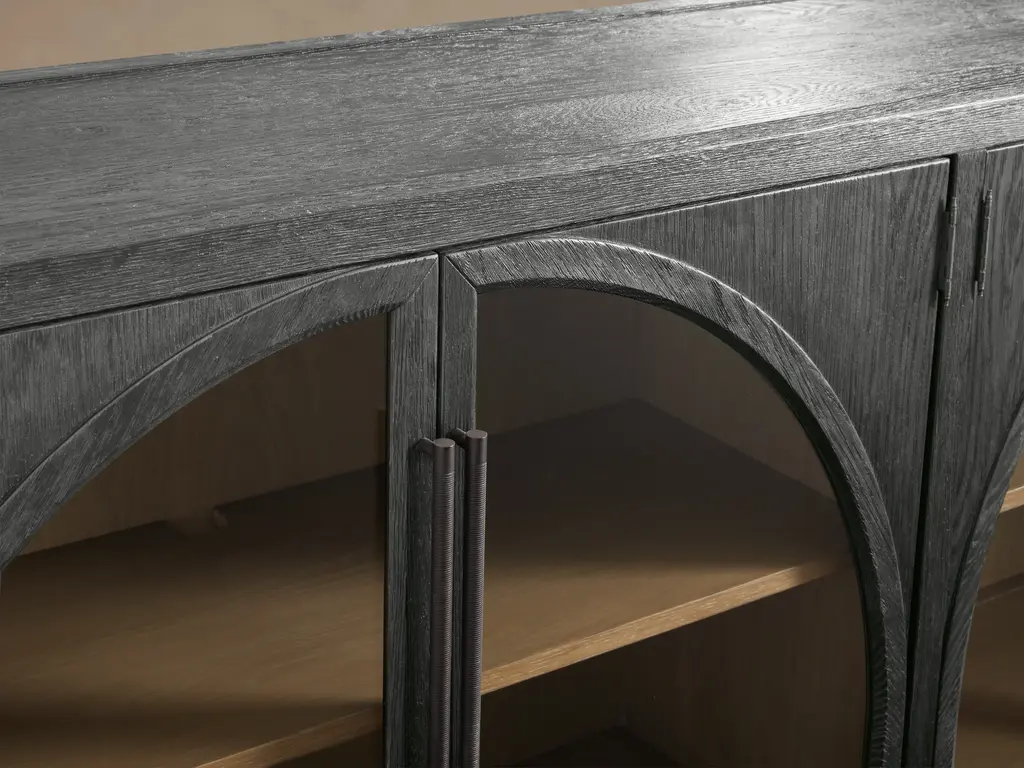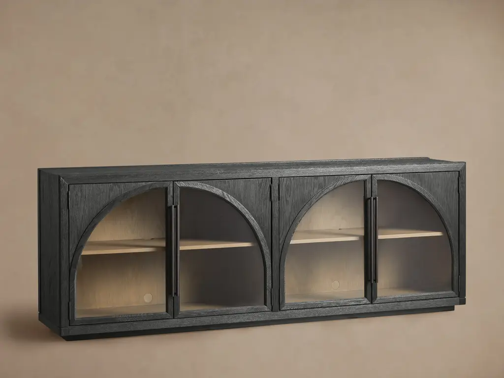 Crafted where soft curves meet the natural depth of oak, our Hattie Sideboard brings thoughtful organization to any space. Arched glass doors frame a warm, architectural silhouette, while generous interior storage keeps serving ware, linens, and all your essentials beautifully arranged and close at hand.