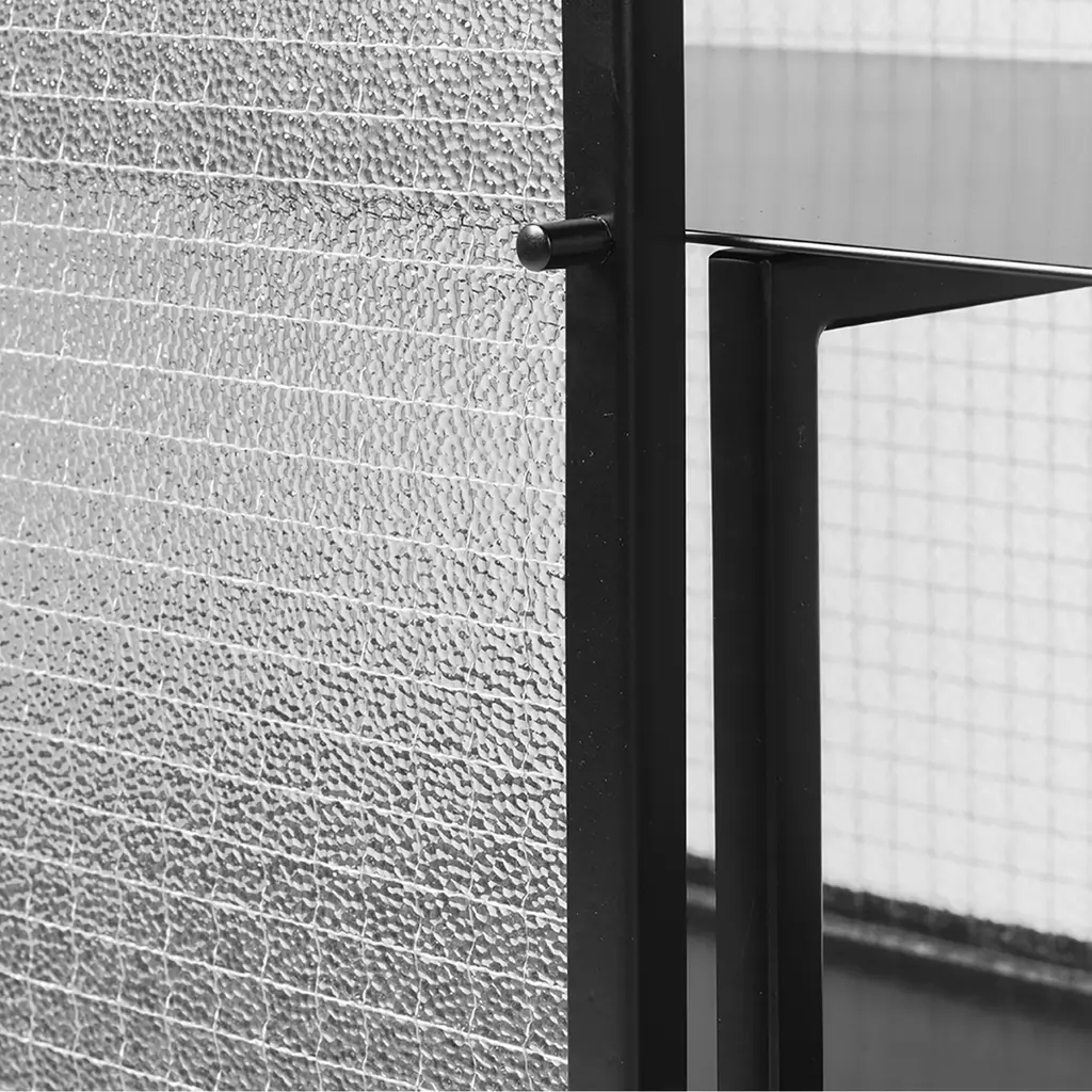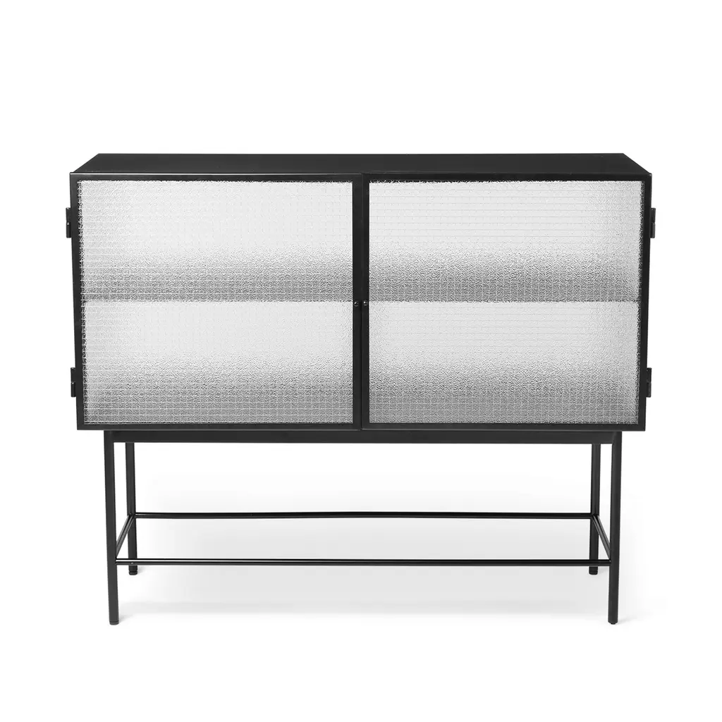 Ideal for tucking away clutter in a bustling hallway, or as a refined storage solution in a home office, bathroom, or dining room, the Haze Sideboard features a sleek metal frame that integrates effortlessly with any interior design. Its corrugated glass walls and doors enhance the sideboard’s elegant appeal while subtly obscuring the contents within, offering both functionality and privacy.