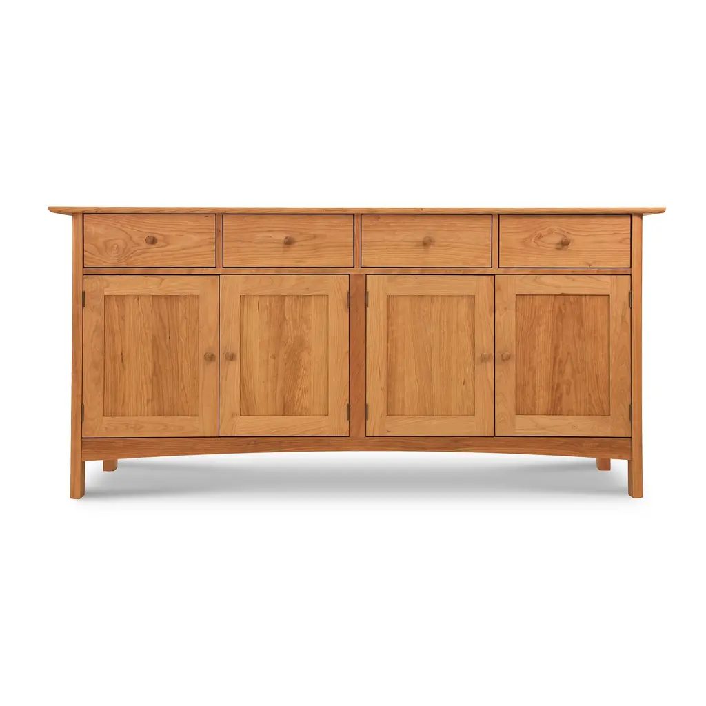 This Heartwood Shaker Long Sideboard is handcrafted in Vermont using premium solid wood. Designed to last a lifetime. Features four top drawers with four bottom doors. Lots of storage space for your contemporary kitchen or dining room. Maple, cherry or walnut hardwoods with natural, eco-friendly oil finish.Base price represents sideboard in natural cherryShown in natural cherry Matching furniture available in our Heartwood Shaker Furniture Collection