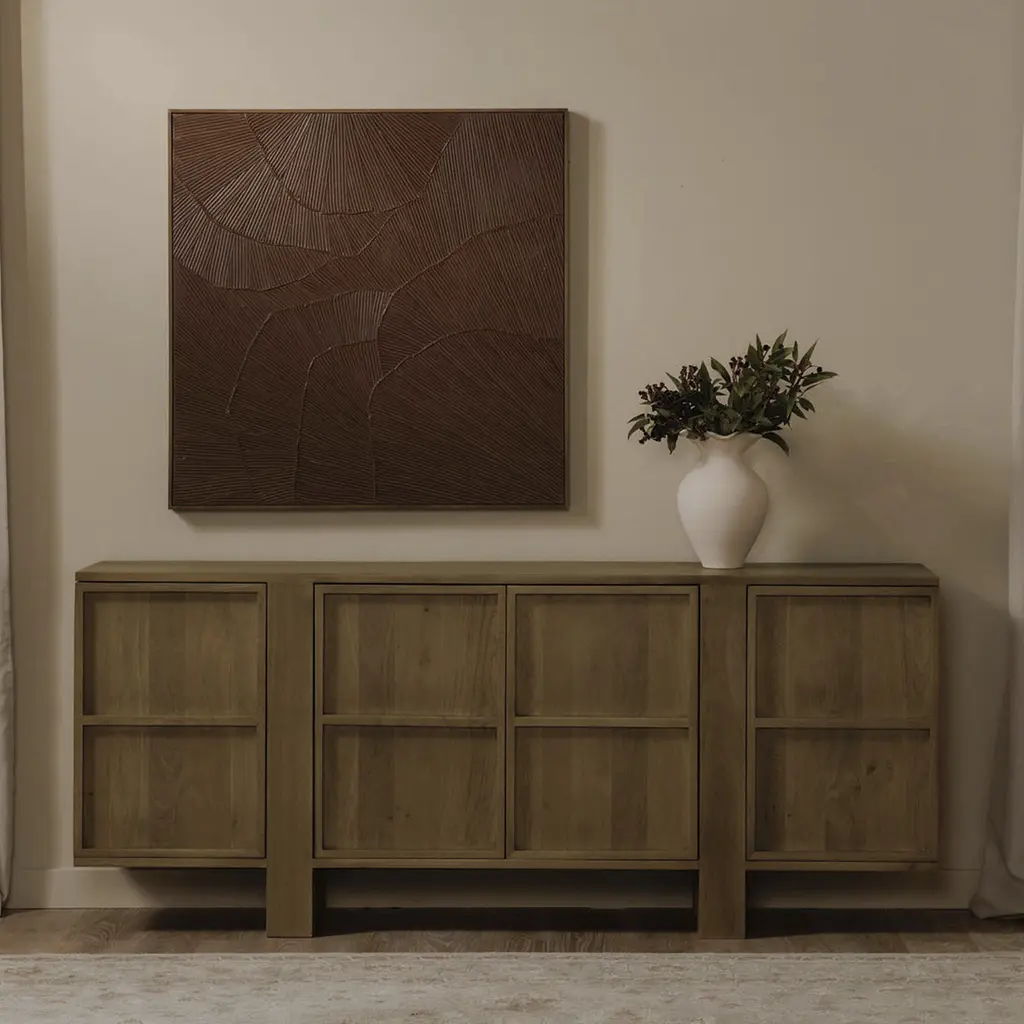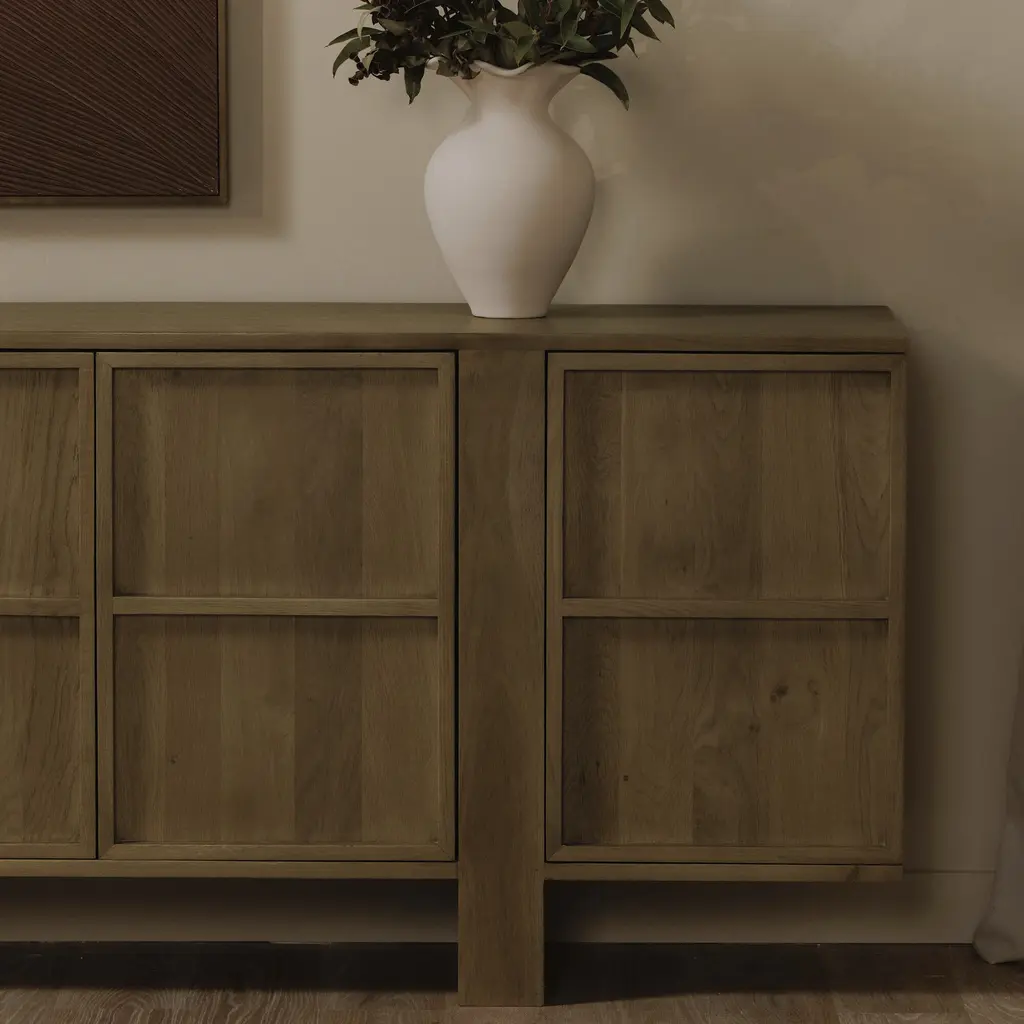 Drawing from the deep familial roots and craftsmanship of a traditional Japanese tansu, the Henley sideboard embodies a blend of heritage and minimalist design. Crafted from solid oak, its design subtly incorporates storage that maintains the integrity of its elegantly elongated legs, presenting a piece that feels both anchored and effortlessly light.
