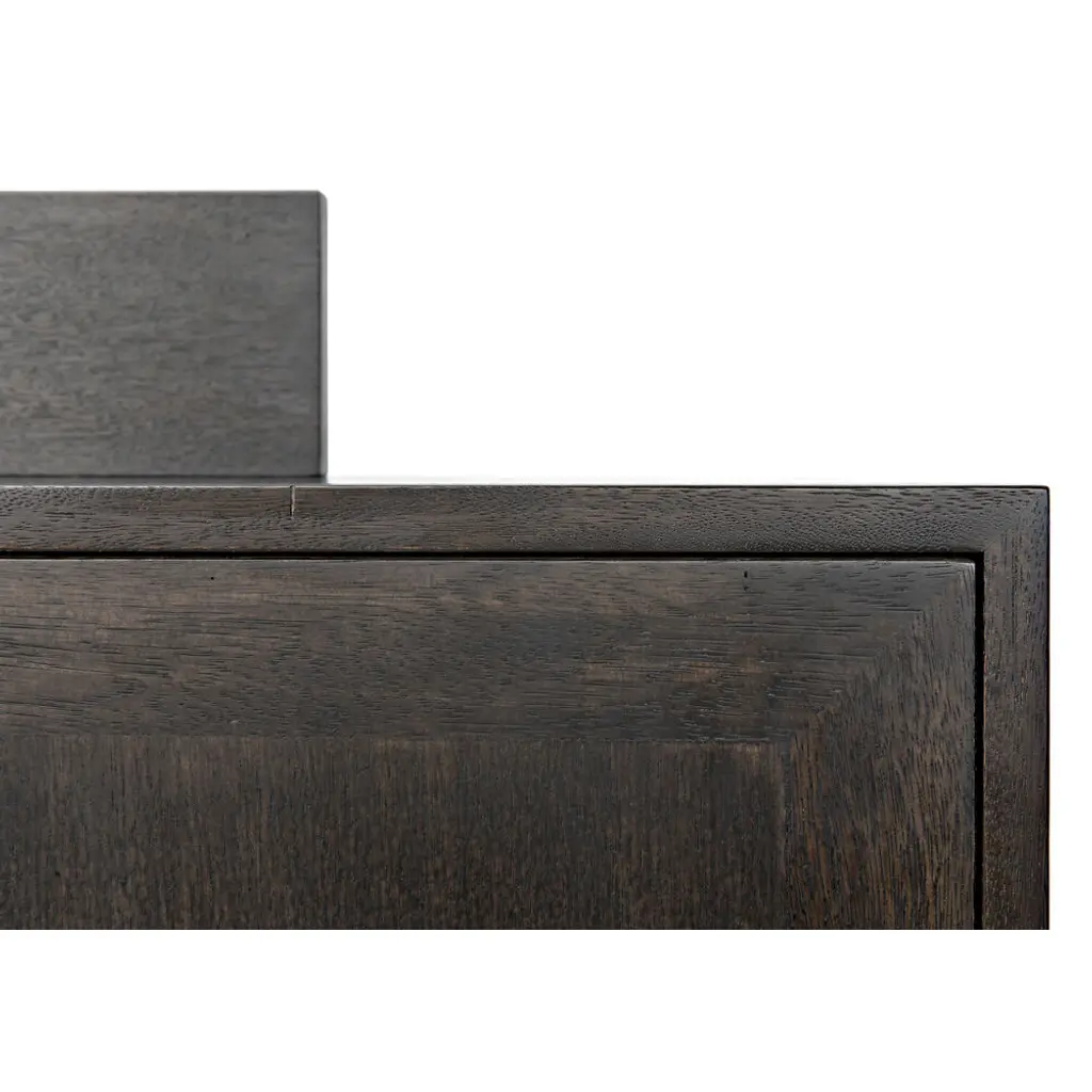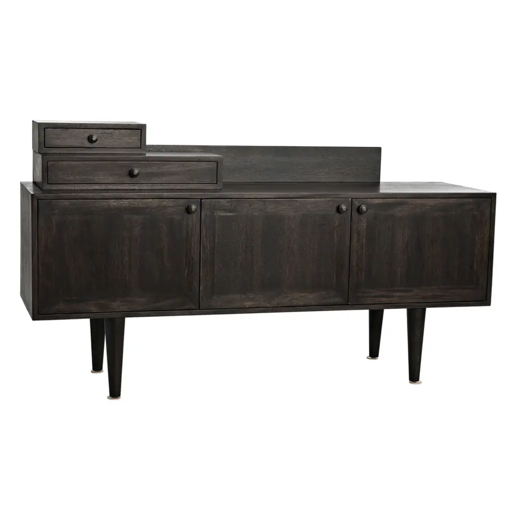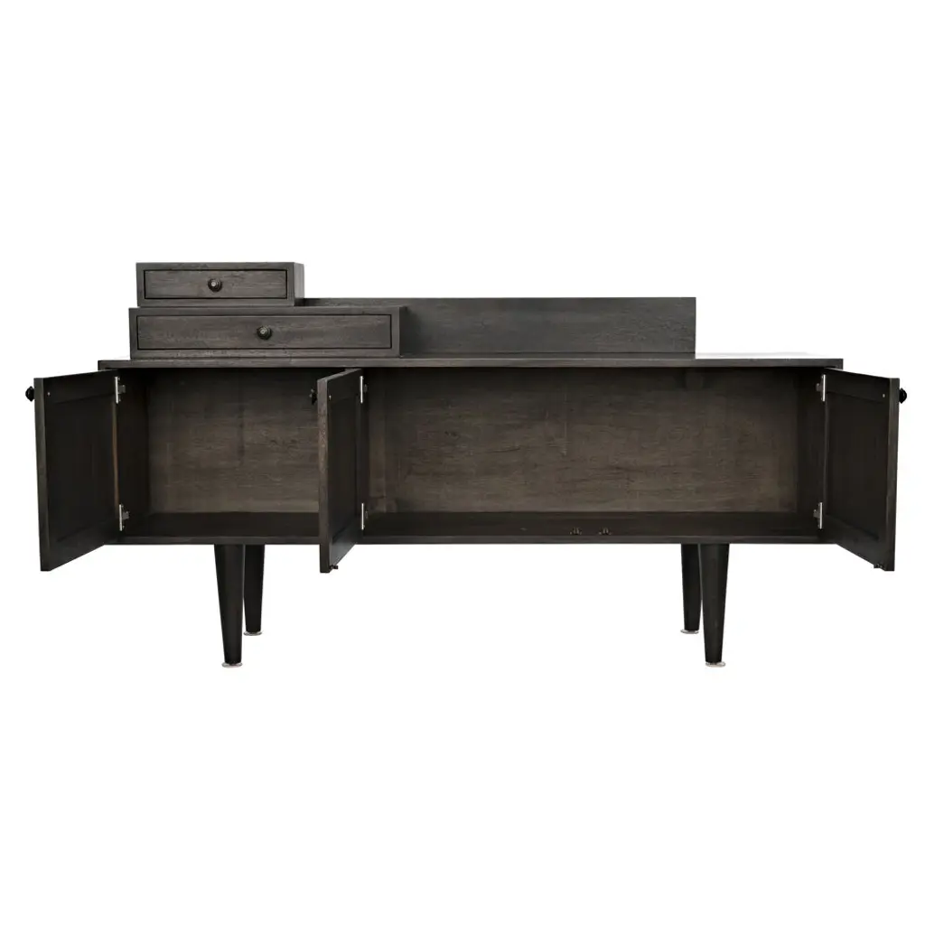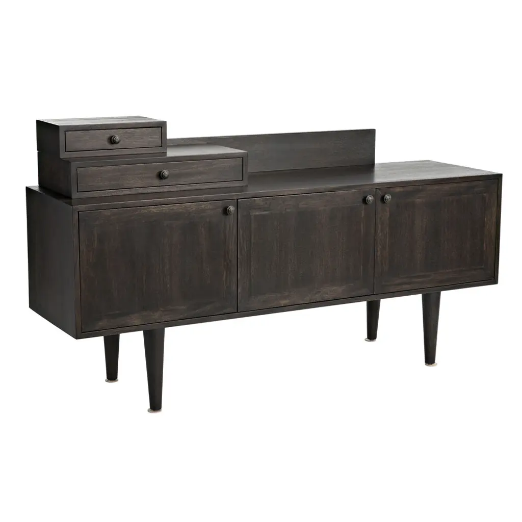 A sophisticated, modern take on a traditional sideboard, the Hermes has been expertly handcrafted of ebony finished walnut. Its two drawers are accessed with metal pulls, and the three doors underneath offer generous hidden storage.
