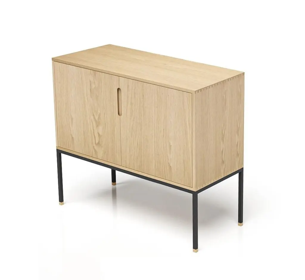 Cosmopol is an elegant and minimalist furniture line inspired by the values of Scandinavian functionalism.Entirely made in France, each piece is individually produced according to your dimensions:You can choose the depth and width of the cabinet, the wood species, and the color of the base.The cabinet and drawers are made of solid ash, oak or walnut, either oiled or covered with a water-resistant matte clear varnish. The interior of the drawers is made of solid ash wood. The joints are made with dovetail connections using environmentally friendly non-toxic glues. The varnishes are water-based and non-polluting, and the oil used is organic and vegetable-based. The base is made of satin-finished lacquered steel, available in black, white, or a range of twenty colors from the RAL palette (contact us). The legs can be finished with solid wood caps of the same species as the cabinet or with black plastic glides.We only use high-quality solid wood sourced from sustainably managed forests, without knots, cut from the most noble parts of the tree.
