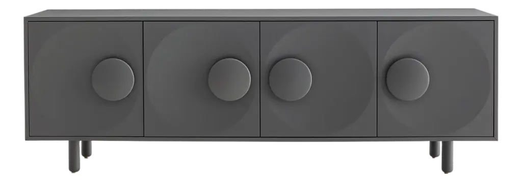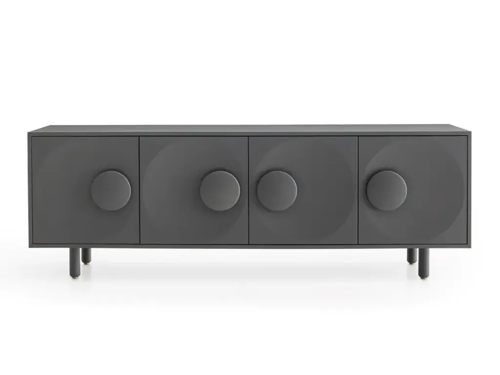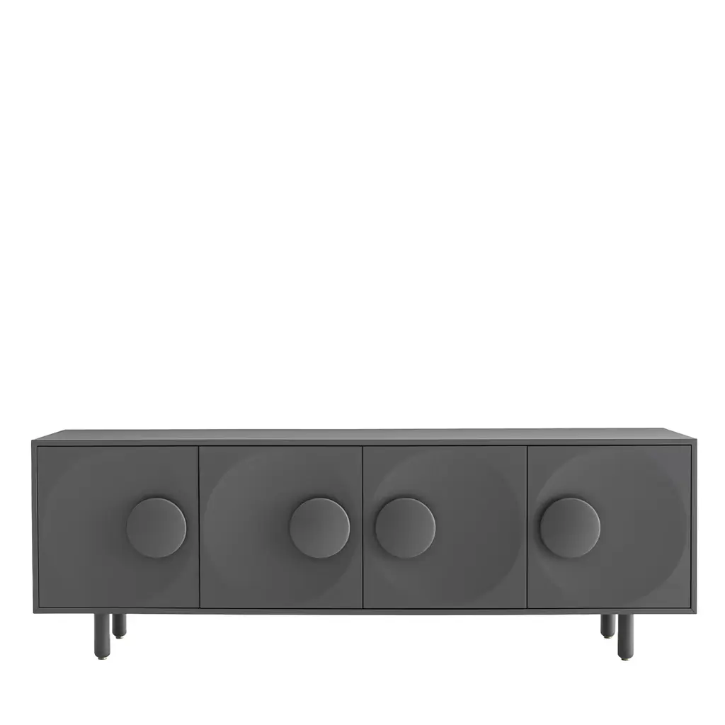 Superbly crafted of Valchromat, an innovative and flexible material that combines the natural and elegant features of wood with the brightest hues, this sideboard showcases a unique and contemporary design by Stefano Mazzucchetti. Resting on a black-lacquered metal base, it features four doors and an inner shelf. Other colors are available upon request, please contact the Concierge for details.