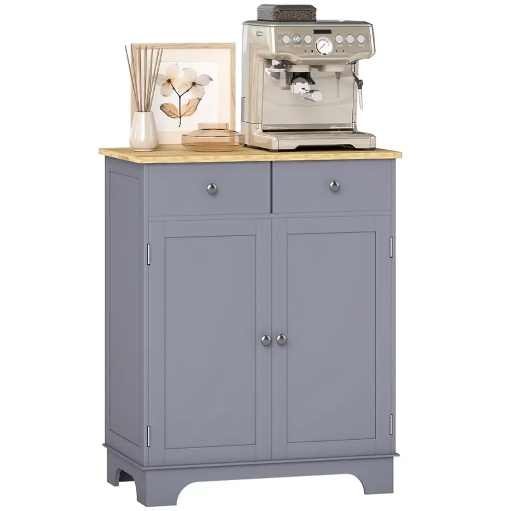 Homcom Kitchen Storage Cabinet, Sideboard Floor Cupboard With Solid Wood Top, Adjustable Shelf, And 2 Drawers For Living Room, Black