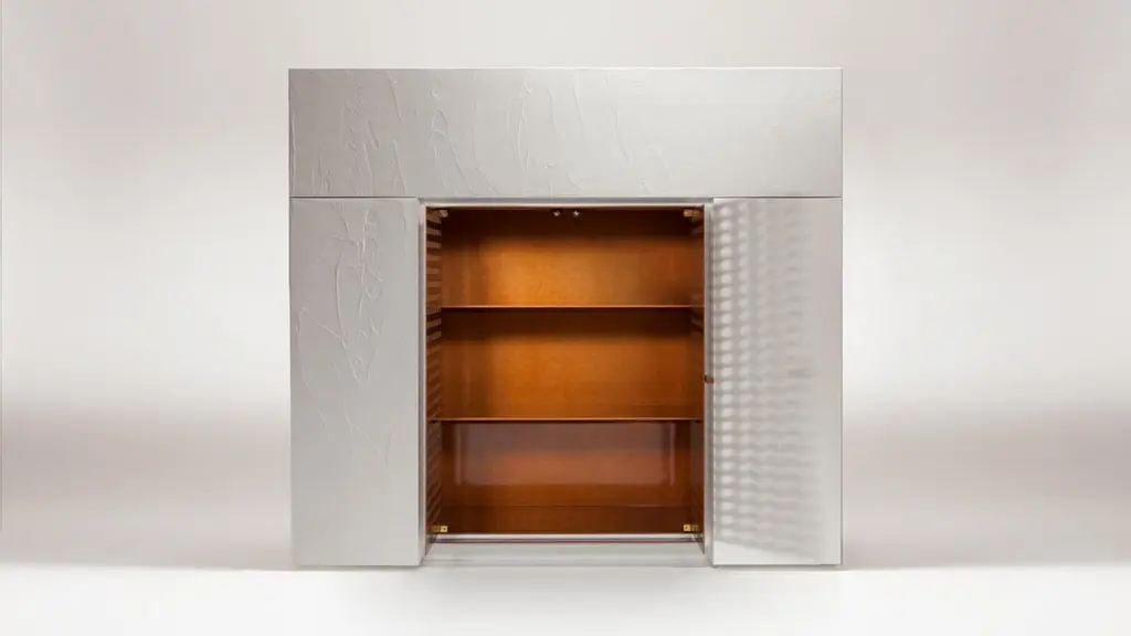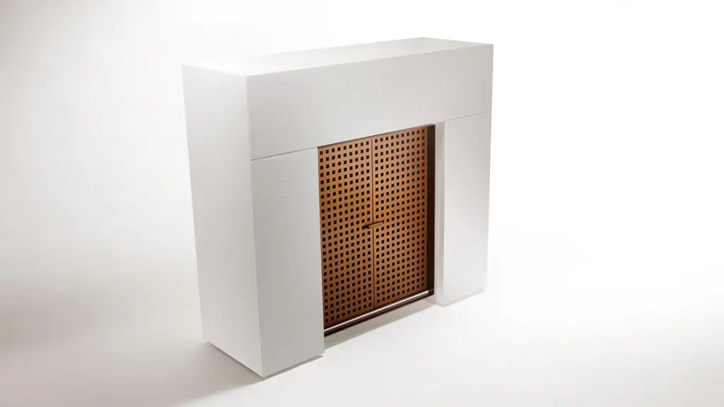 Recreating the image of an ancient cottage with irregular whitewashed walls, Homeland represents a safe place full of inner light and protector spirit.Homeland was the first creation to be launched by Joana Santos Barbosa for InsidherLand and it’s an intriguing design. This contemporary sideboard results from a thorough handmade work with unrepeatable details. Compact in appearance, Homeland seems to be an impenetrable “wall”. However, it is a sideboard that responds to the various support functions to a dining room.Product detailsWood structure manually coated with mass, painted with white satin matt finish. Interior in white lacquer with a matt varnish finish and drawers lined with white velvet.Perforated central doors, metal frame and handle finished with a semi-gloss varnish. Inside space lacquered in high-gloss varnish.Product optionsUnder request.Weight 90Kg 198,5 lbsMade to order. Custom sizes and other finishes are available under request.Designed by Joana Santos Barbosa for InsidherLand, 2012. Handmade in Portugal.