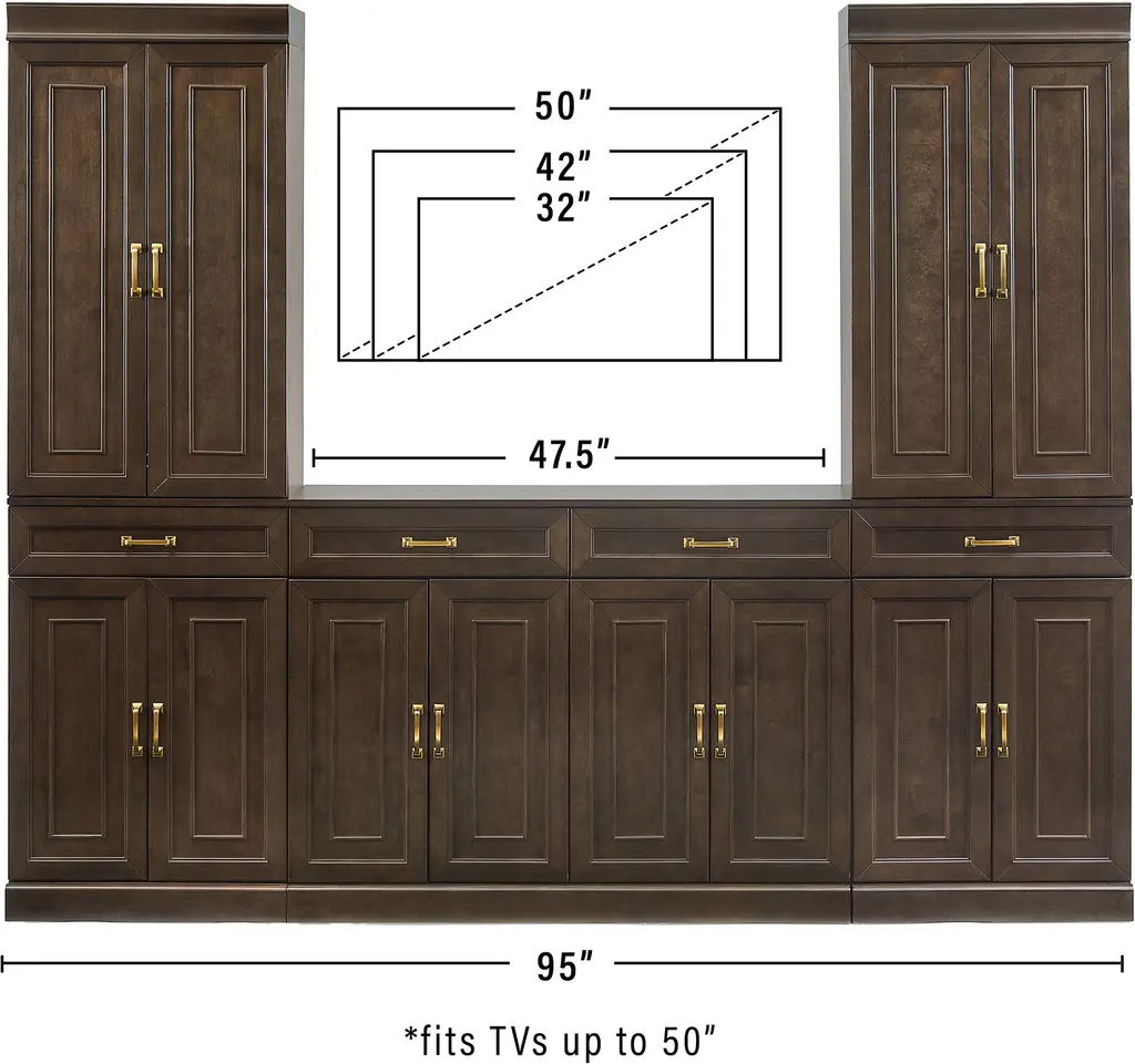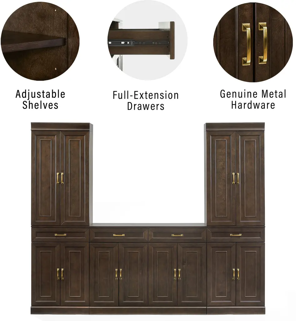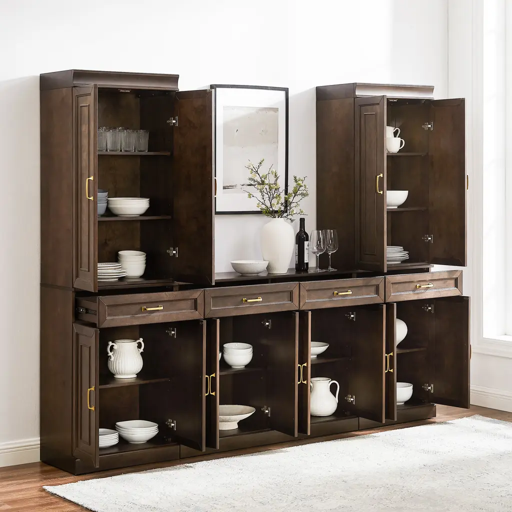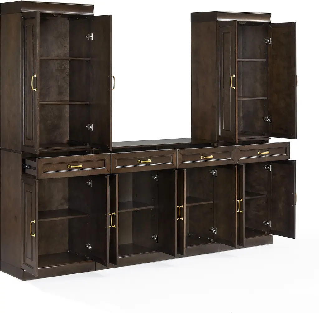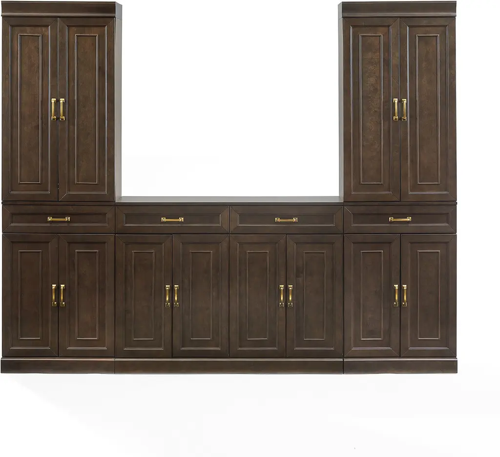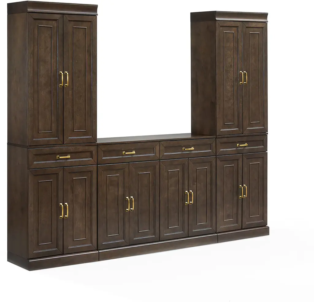 Amazingly versatile with storage galore! The Stanton 3pc Sideboard and Pantry Set has the look of classic built-in cabinetry with a flexible modular design. Featuring a total of six large kitchen storage cabinets with adjustable shelves and panel doors, this buffet cabinet with storage stows a variety of everyday items. Perfect for a dining room or home office, the four full-extension drawers are ideal for storing flatware or office supplies. The Stanton 3pc Sideboard and Pantry Set is ready to create a custom look in any room of your home.