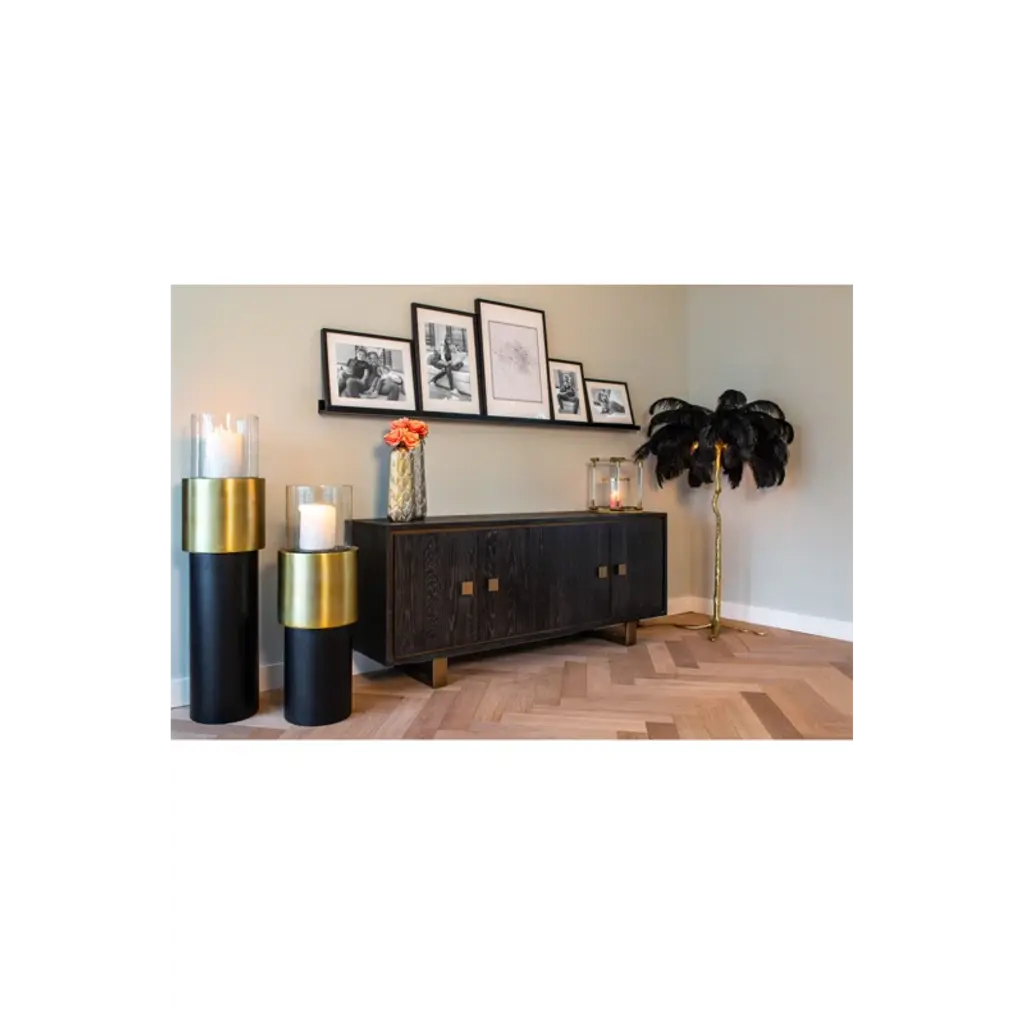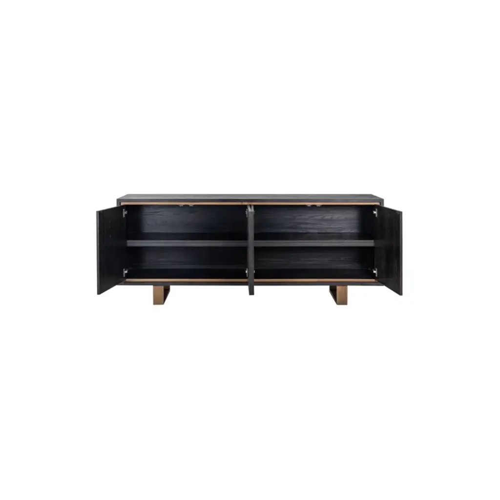 Contemporary Modern Style. Part of Mako collection. Dimensions: 76"W 18"D 34"H. Product weight: 157lbs. Color: Grey. Matt Lacquer: No Stain finish. Assembly is not required. Made in China. We are offering 1 year limited warranty (covered for any manufacturer's defect). Construction: Plywood,Oak Veneer,Polyurethane. Frame: Solid Black Oak Frame. Other materials: Brass Legs. We understand how important your home is and how decorating your kitchen, dining room or bedrooms with classy, contemporary furnishings can help make it a place that reflects who you are. We believe in the power modern furniture has in creating not just a home but YOUR home. We believe in feeling good about our home's environment, and we think you do too.