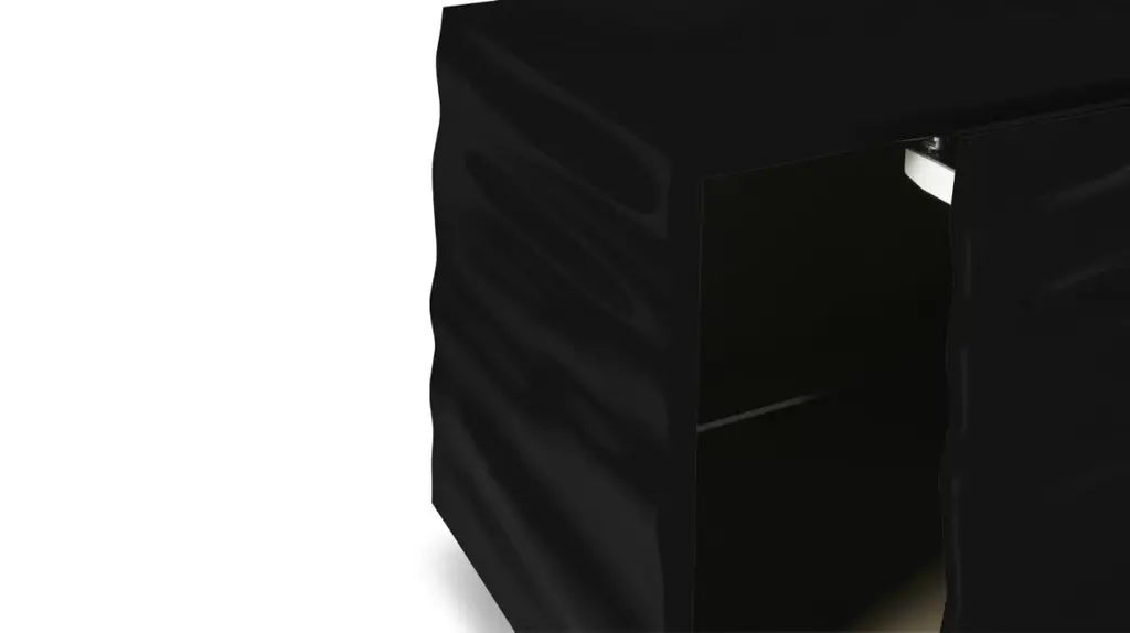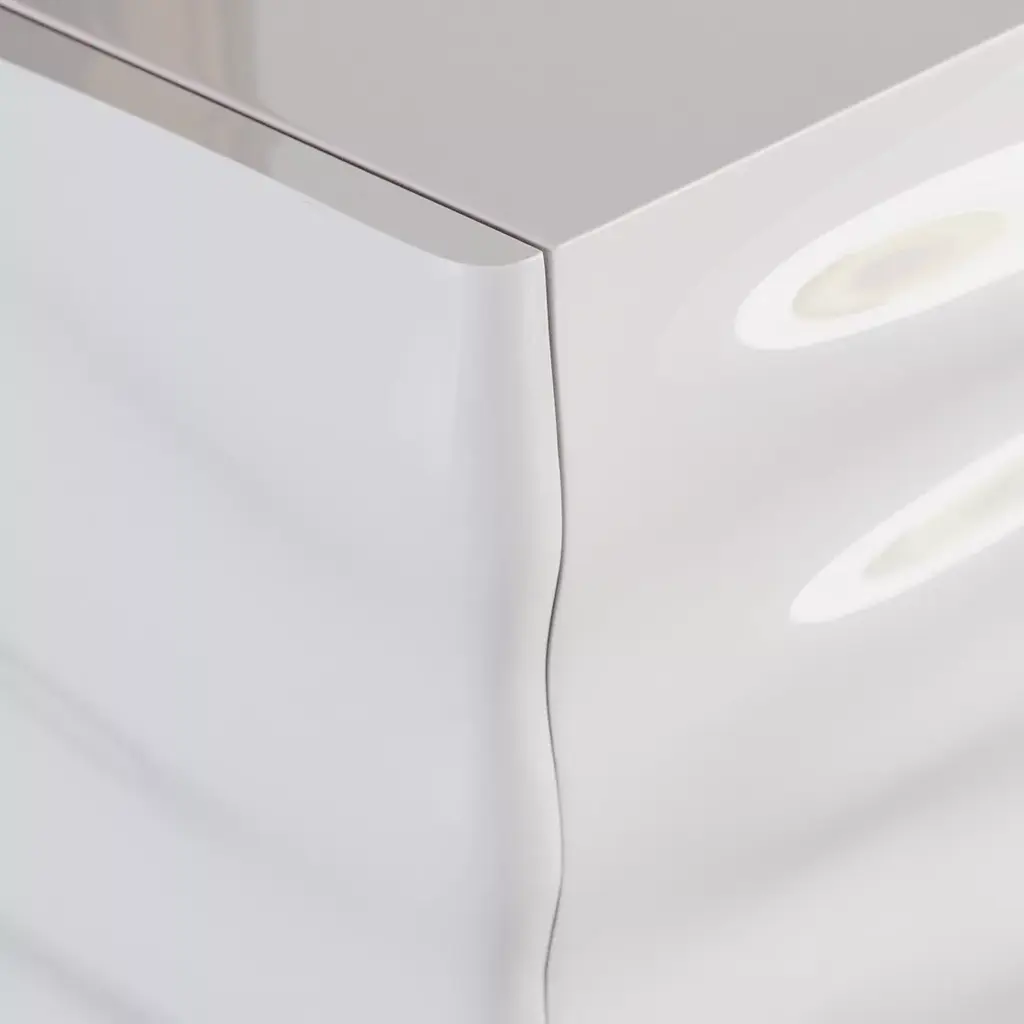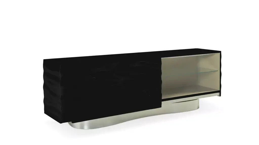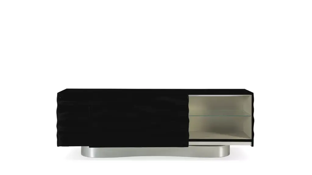 Imagined by Bina Baitel, the Icy sideboarddrawing inspiration from the ripple of water, immerses us in a world of freshness and fluidity. Its Daquacryl finish, with a soft gloss, wraps around the front and sides, creating a fluid effect and unique visual continuity. Set on a brushed steel base, the piece blends visual poetry with technical mastery. Imagined by Bina Baitel, the Icy sideboarddrawing inspiration from the ripple of waterimmerses us in a world of freshness and fluidity. Its Daquacryl finish, with a soft gloss, wraps around the front and sides, creating a fluid effect and unique visual continuity. Set on a brushed steel base, the piece blends visual poetry with technical mastery.
