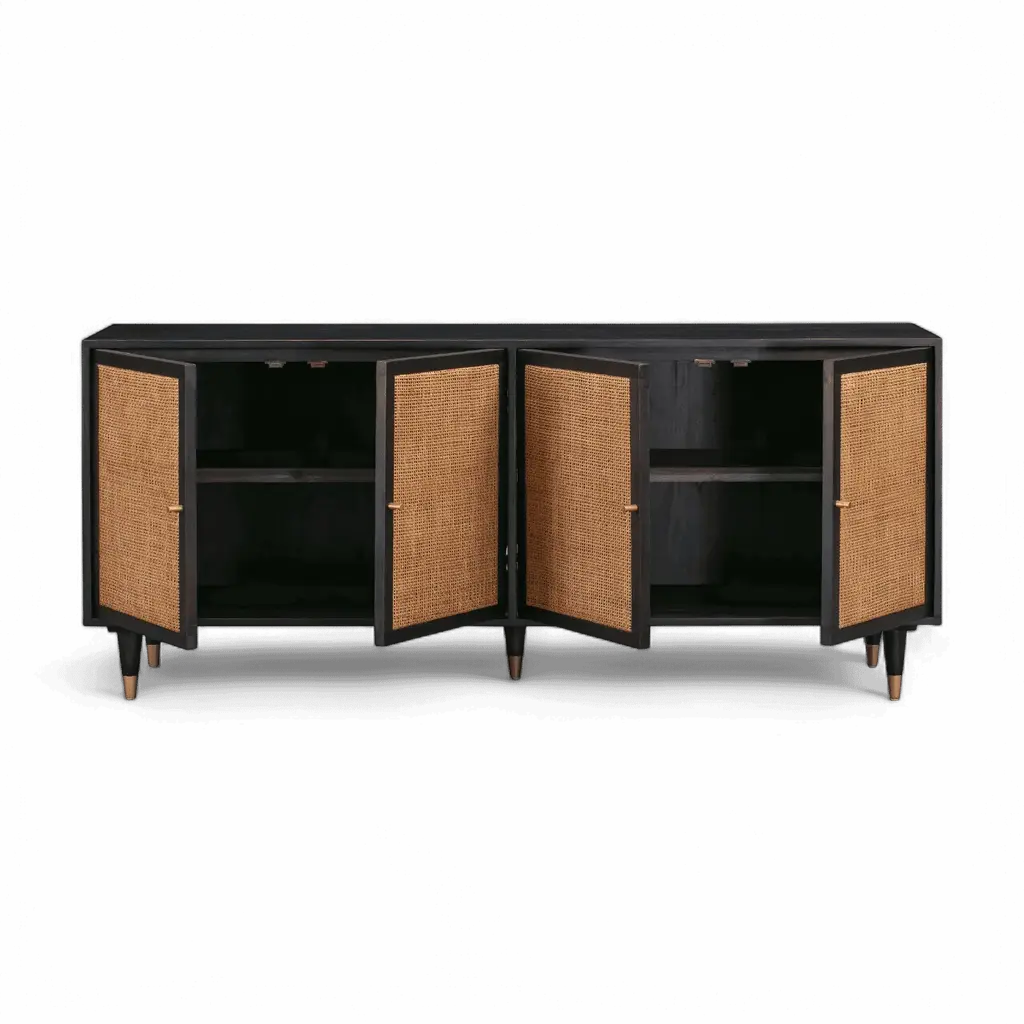 The Ignis Noir Sideboard is a statement of modern luxury. With its deep black finish and ample storage, this piece adds a touch of sophistication and practicality to your dining or living area.Acacia,Iron,MDF | Available in two color options | Two cabinets with soft-close doors offer ample storage space | Cabinet dimensions: 34.9"W x 14.5"D x 23"H