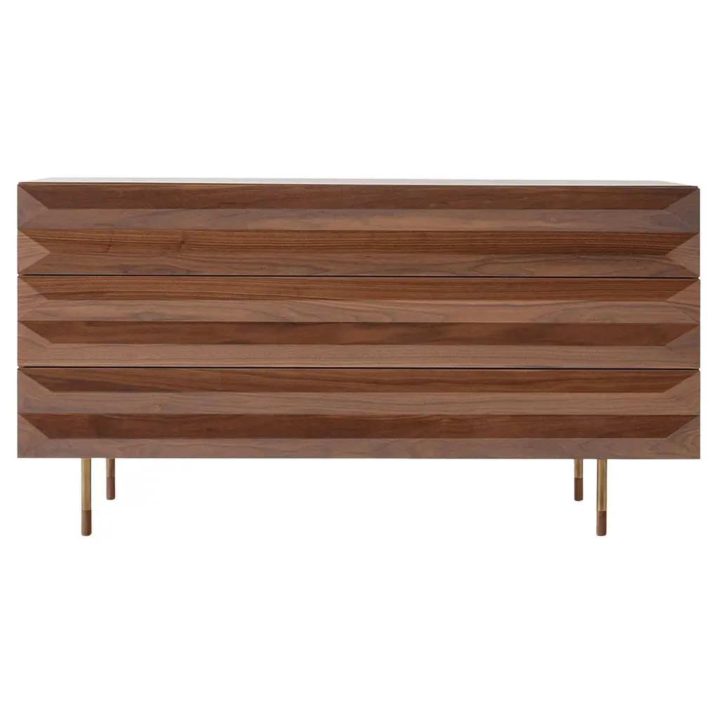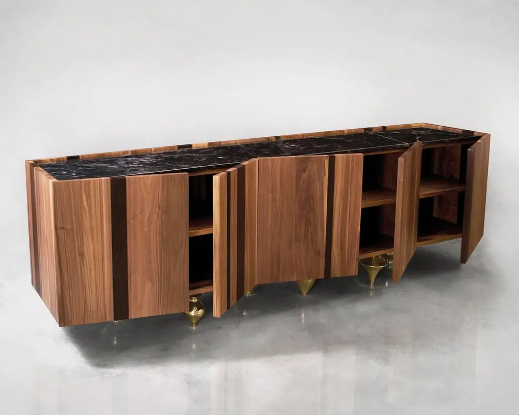 "Il Pezzo 1 Credenza" Sideboard In Solid Walnut - Marble Top - Brass Base