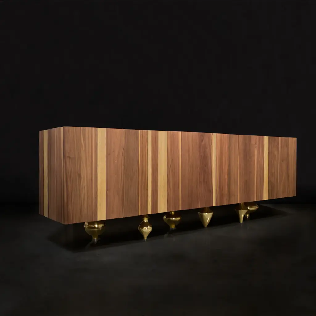Il Pezzo 1 Credenza is a solid wood sideboard finished with a natural oil has a marble top and rests on smelted brass legs crafted according to the artisanal tradition of Tuscany. In each piece a small brass cylinder carrying a personalized number attests to its uniqueness and authenticity.This credenza can be custom made to desired size and finish.