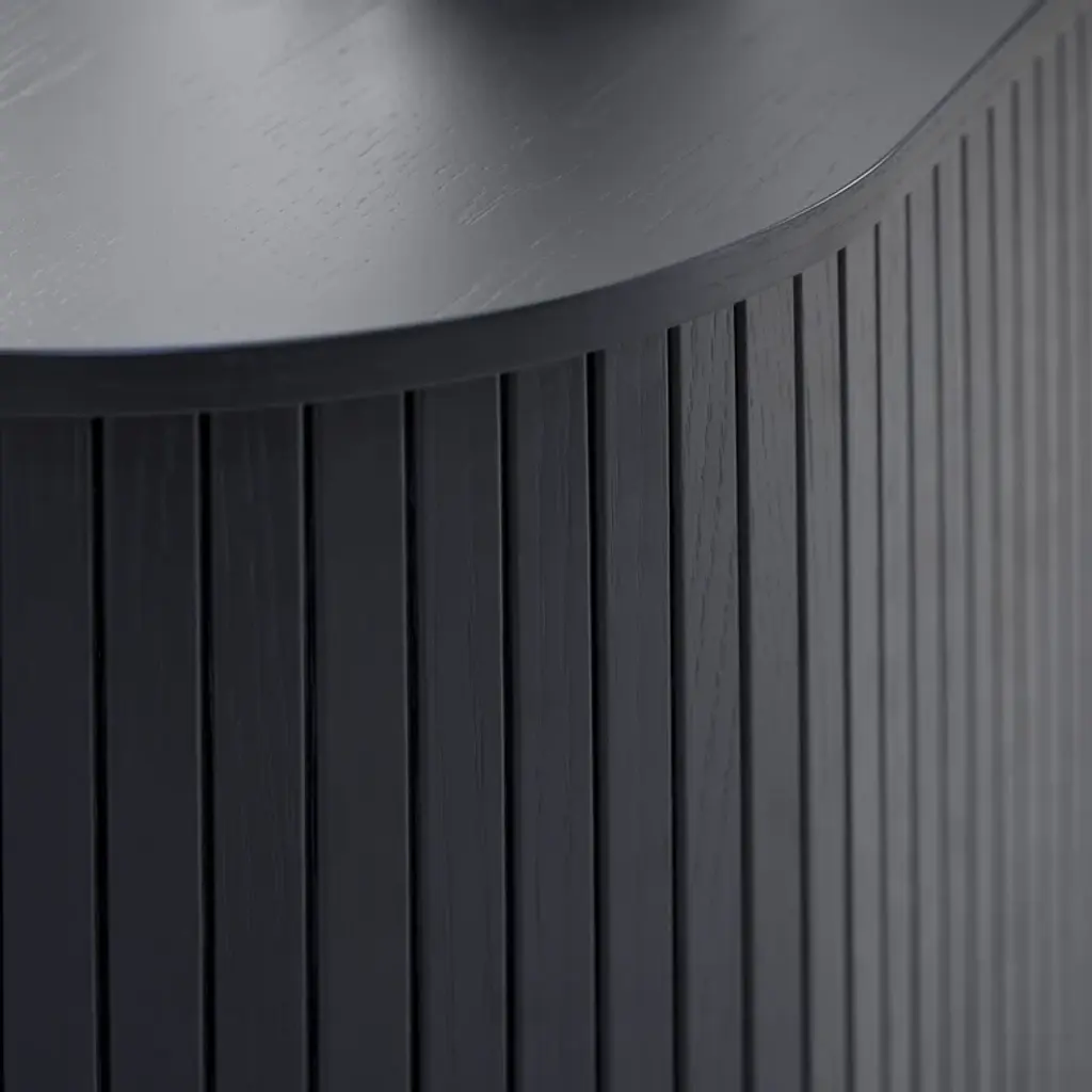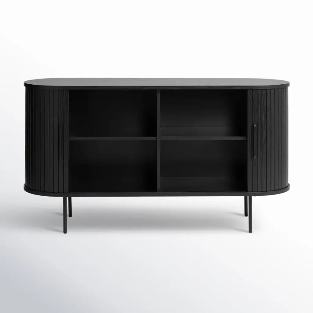 Shape + form. This sideboard has a mid-century silhouette with plenty of storage. It's built with sturdy kiln-dried wood + finished with solid oak veneers for an organic look. Dynamic sliding tambour doors offer an architectural aesthetic – and open to reveal generous storage compartments. Pair with other pieces from the collection for a cohesive look.