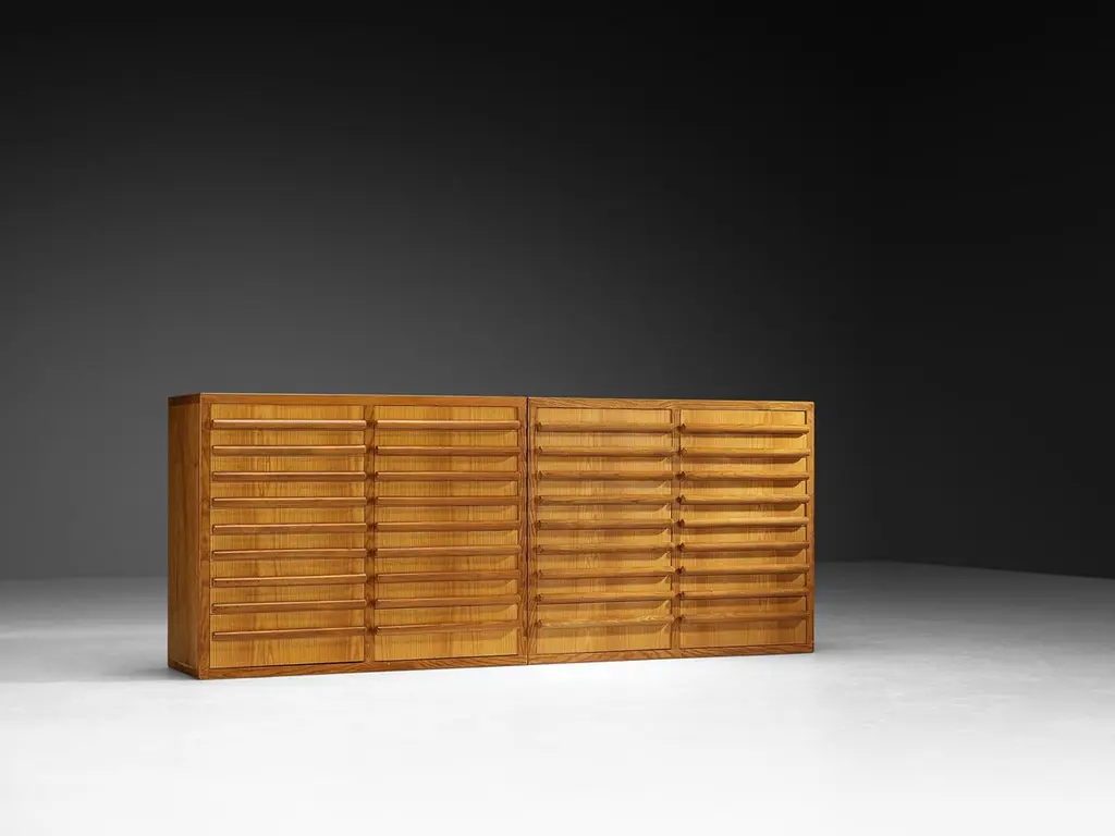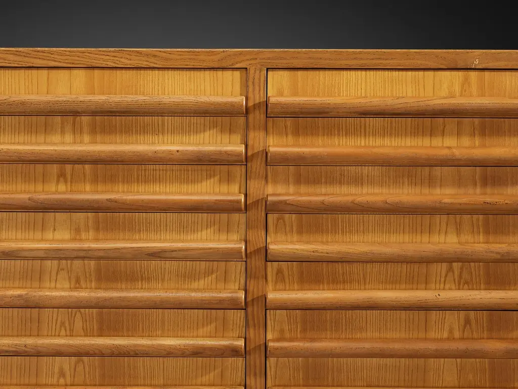 Sideboards, ash, Italy, 1960sThese stunning sideboards, crafted in Italy during the 1960s, embody a clean, modern sensibility with thoughtful proportions and elegant simplicity. Executed in warm ash wood, their horizontal rhythm is defined by finely sculpted handles that double as design features, giving the front a refined texture without compromising clarity. Each unit can be seamlessly placed alongside the others to create a large, continuous sideboard. We currently have six pieces in stock, offering the flexibility to compose a striking, expansive storage solution for a larger space. Kindly note that the price is per sideboard.
