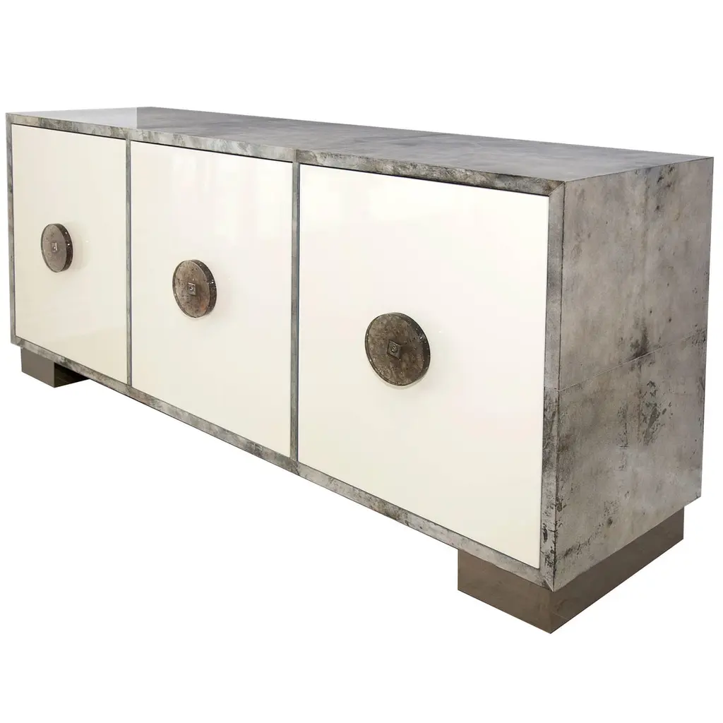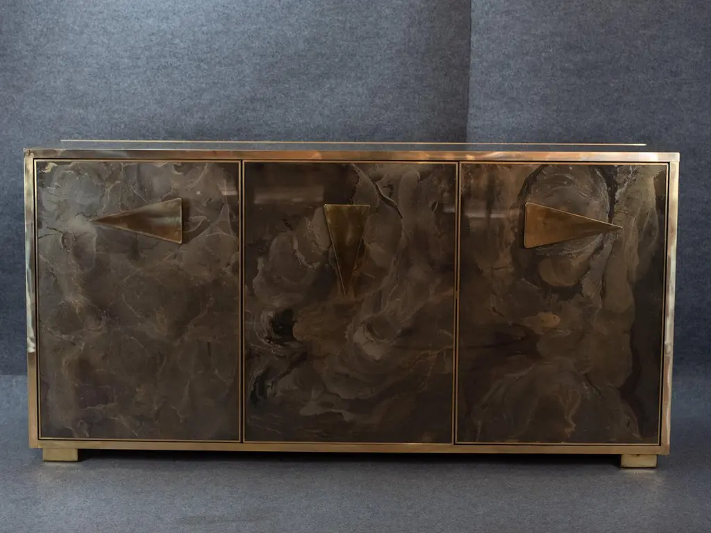 Italian Sideboard Hand-Painted Marble-Effect Glass With 3 Doors Available