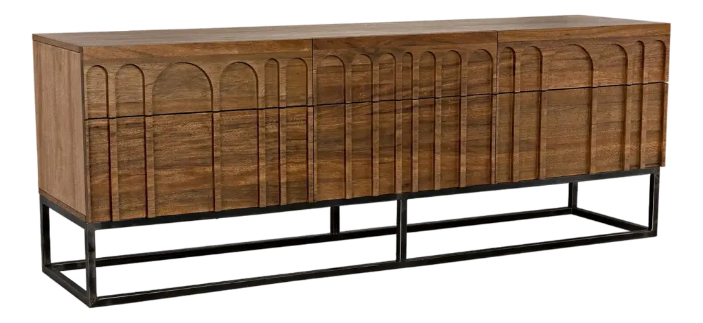 The Jackson Sideboard is a winning combination of solid mango and sheesham wood. Four cabinet doors open up to reveal spacious shelves for the tidying enthusiast. Pair with the rest of our new Jackson Collection for a stylish, streamlined look.