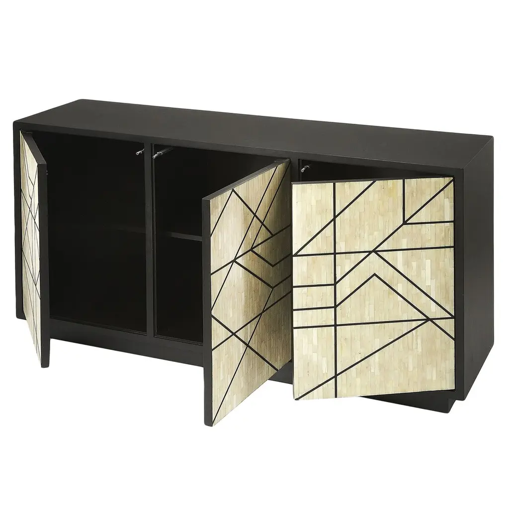 James Bone Inlay 59" Sideboard, Black/ivory
