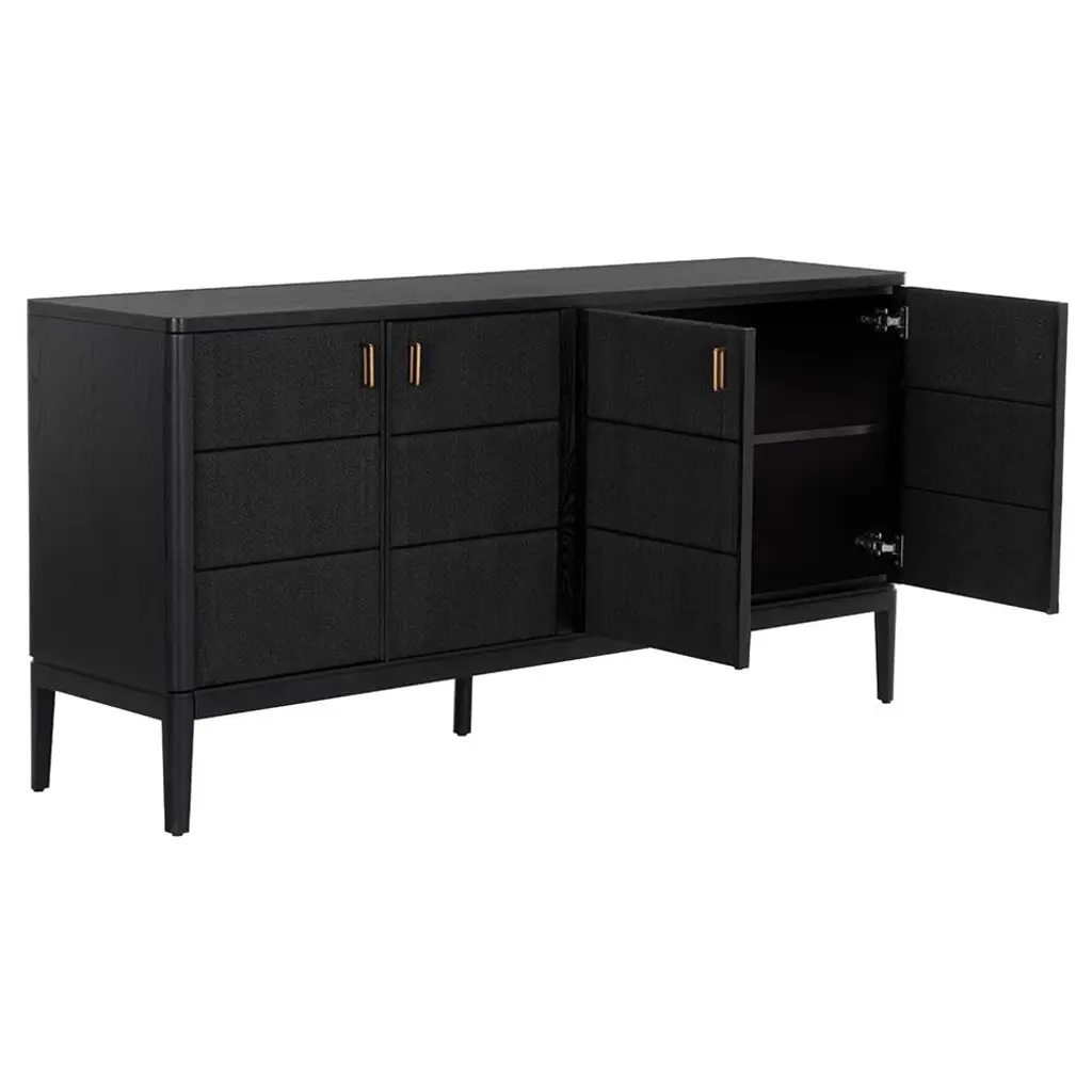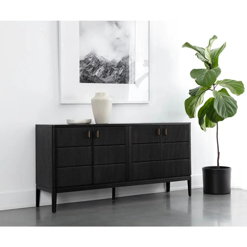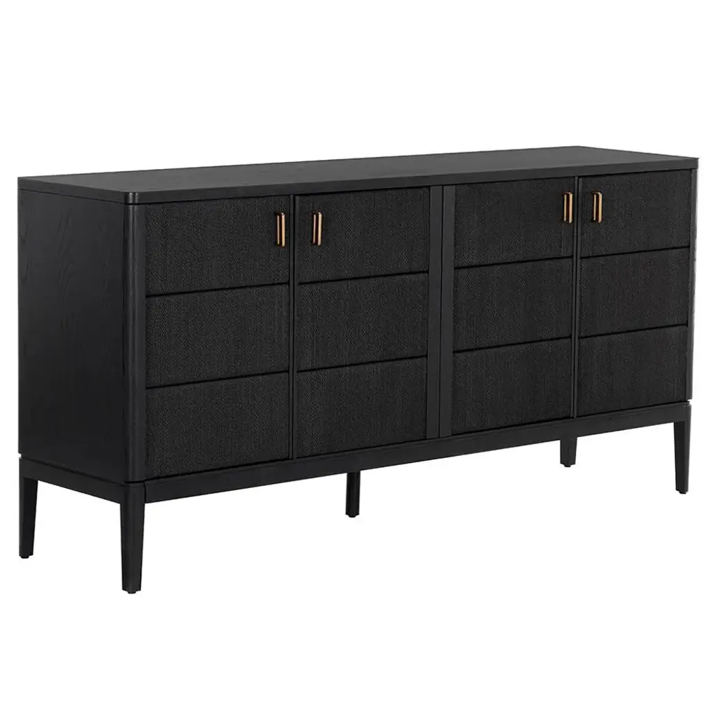 Jamil Coastal Beach Black Rope Door Oak Wood Sideboard