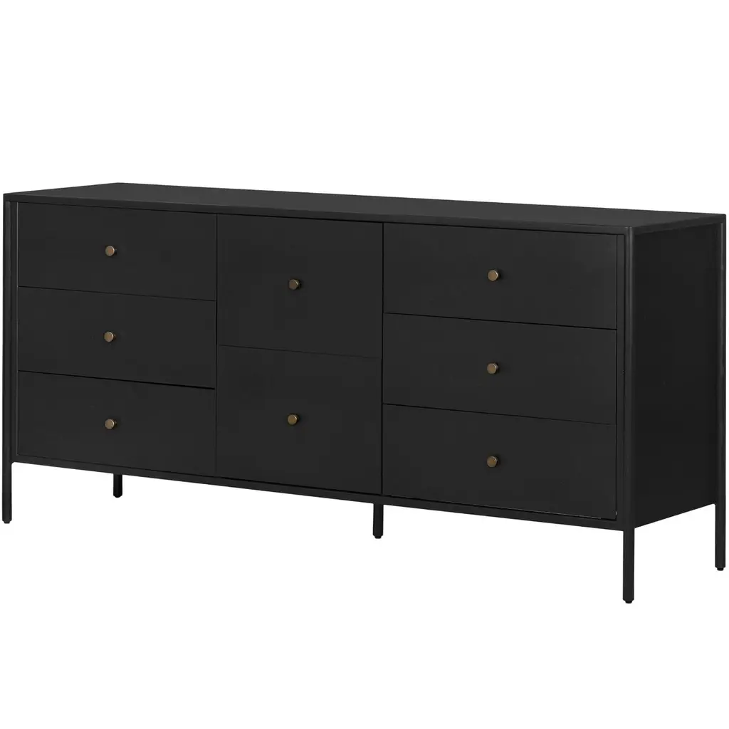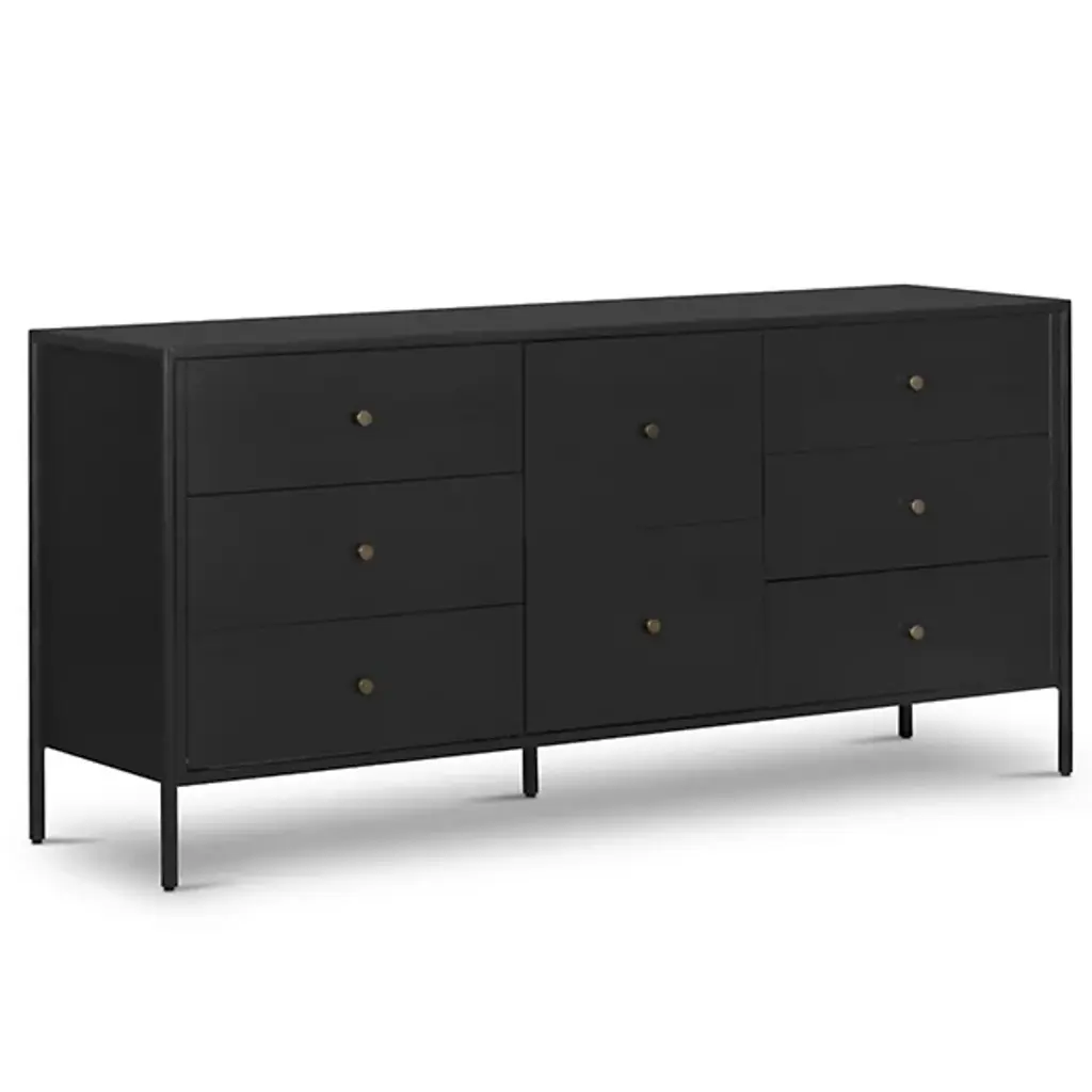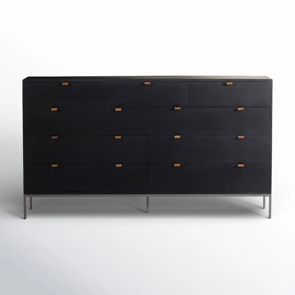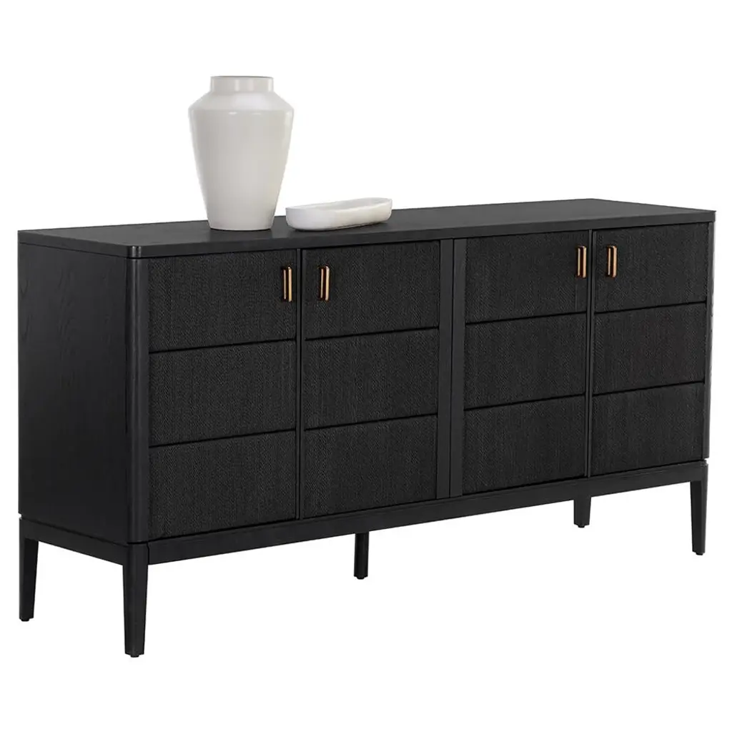 Jamil Coastal Beach Black Rope Door Oak Wood Sideboard