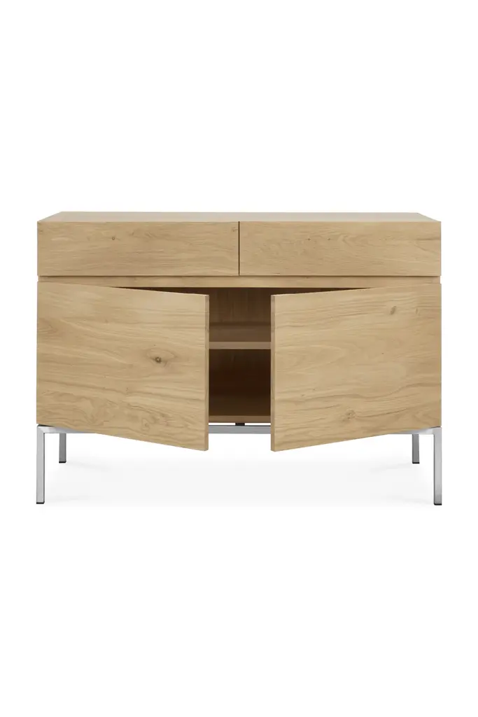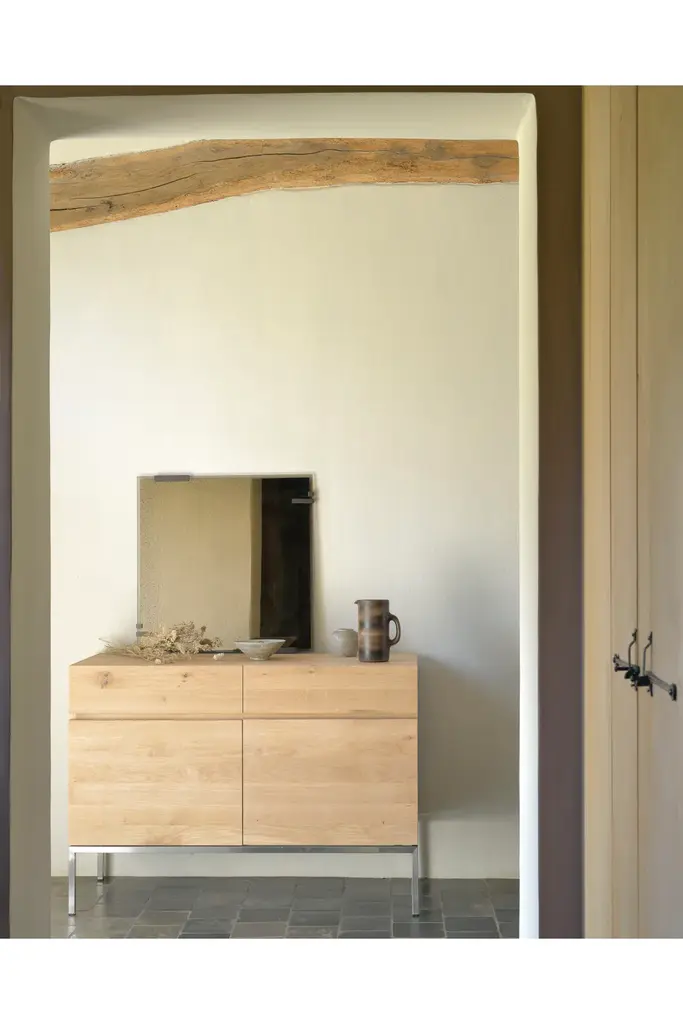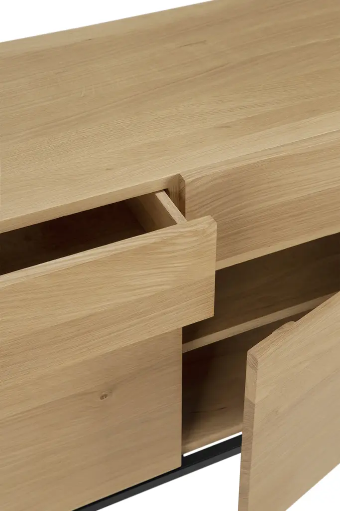 With clean and pure aesthetic, this Japandi Style Sideboard by Ethnicraft offers a perfect storage facility for the living room, kitchen, or dining room. Crafted from durable solid oak with a hardwax oil finish, the Ligna sideboard features ample space whether you're organizing your essentials or simply enhancing your interior decor. This wooden piece comes in various sizes to cater to your specific needs.