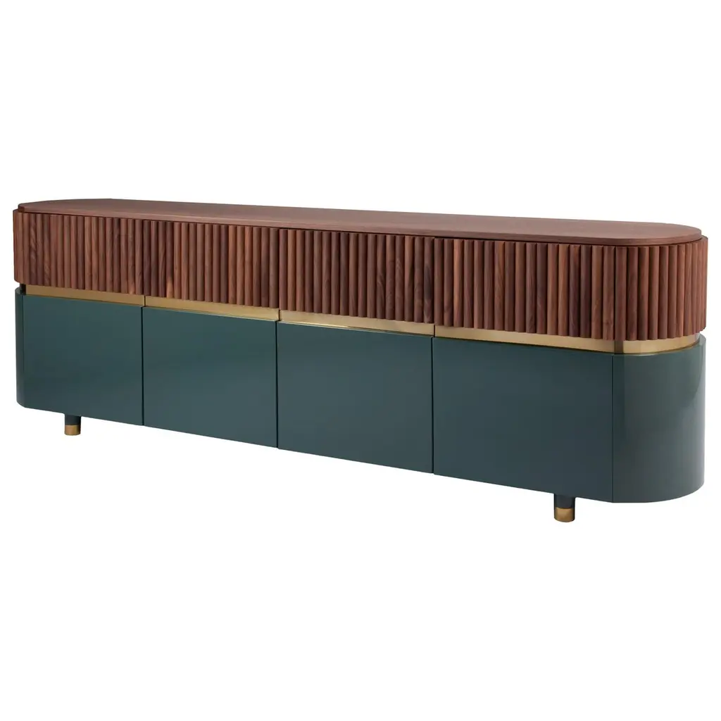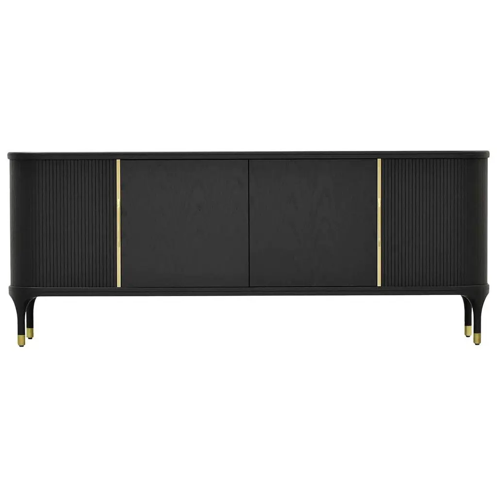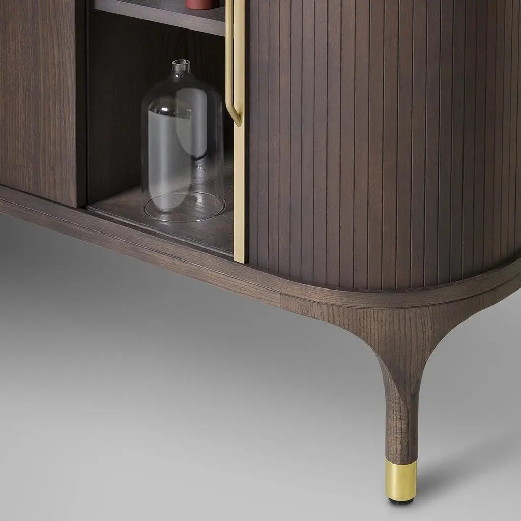 The Joyce collection represents a blend of past and present, innovation and tradition in the attempt to shape objects designed to last over time. The Sahara Noir marble top perfect complements the elegance of the moka ashwood. The sideboard features two hinged doors and two sliding doors with brass handles. Each piece follows the values of artisanship and artistry typical of the Italian cabinetmaking tradition, enhancing the beauty of carved solid wood, its shapes and its natural features. Elegant, sophisticated but at the same time a versatile passe-partout, the pieces of the Joyce collection, are suitable for different types of ambiences from classic to a modern home style, lasting over time.